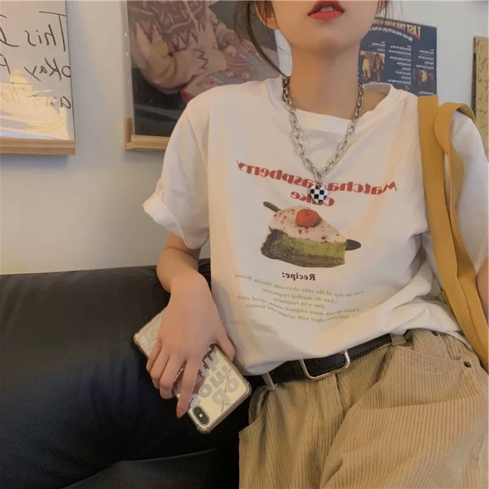 年夏季卡通字母印花圆领大码女装百搭上衣纯棉后包领短袖t恤