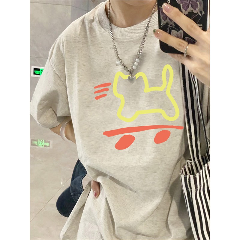 夏季纯棉短袖t恤女新款爆款设计感小众正肩美式宽松半袖上衣