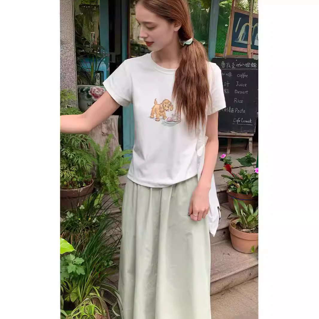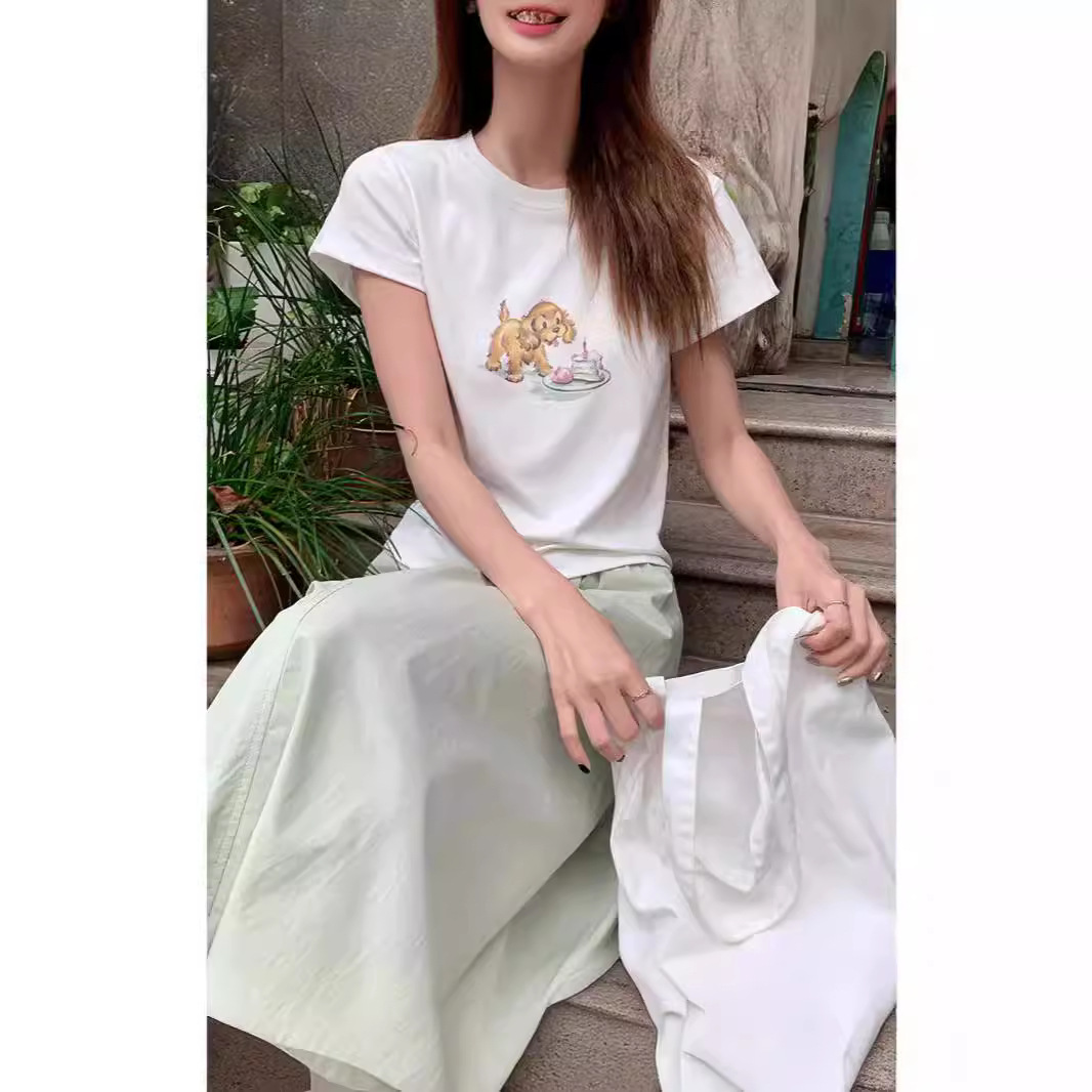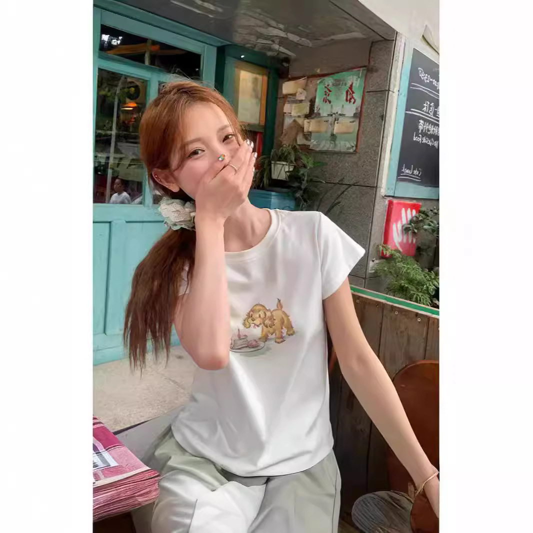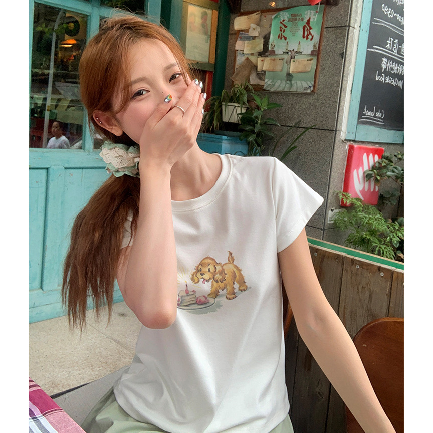 减龄趣味印花短袖T恤女夏季新款韩版百搭修身小个子短款上衣