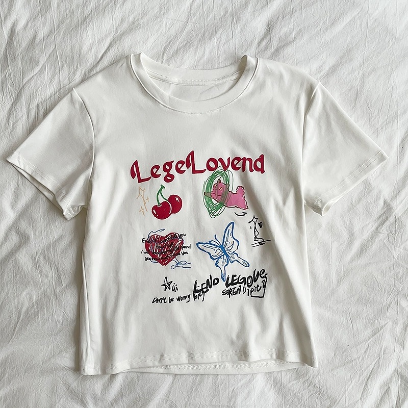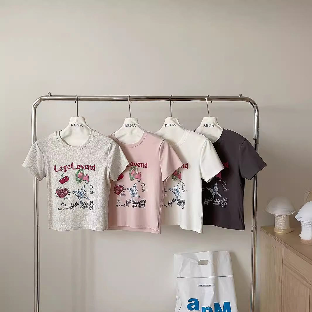 圆领字母短袖T恤女夏季印花简约正肩修身显瘦薄款百搭上衣