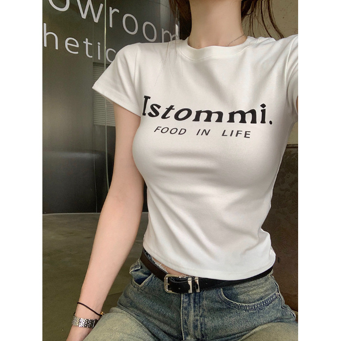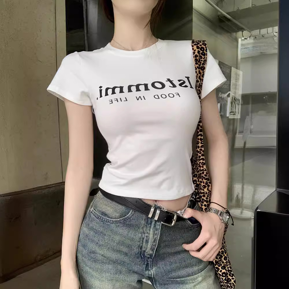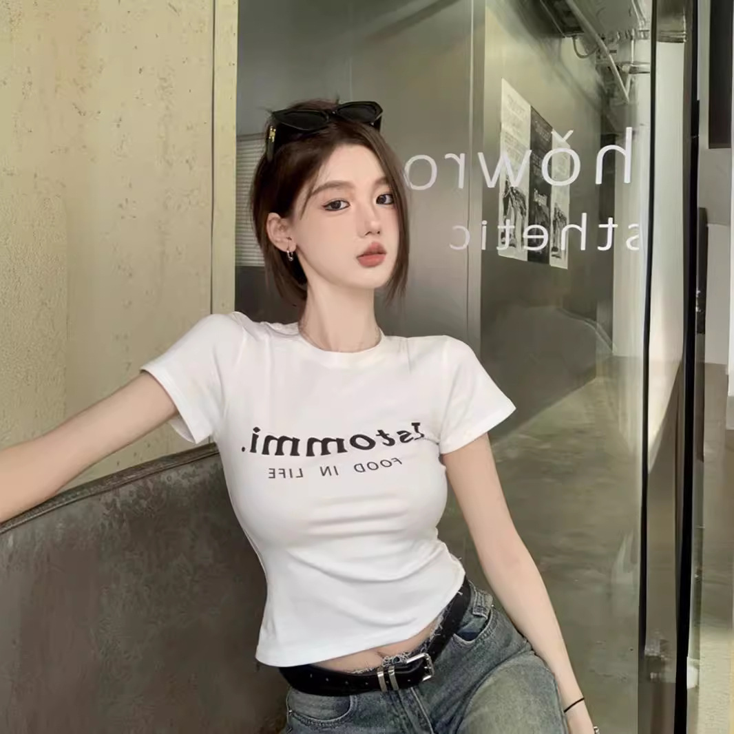 韩系字母印花白色短袖T恤女夏季新款设计感小众修身显瘦上衣chic