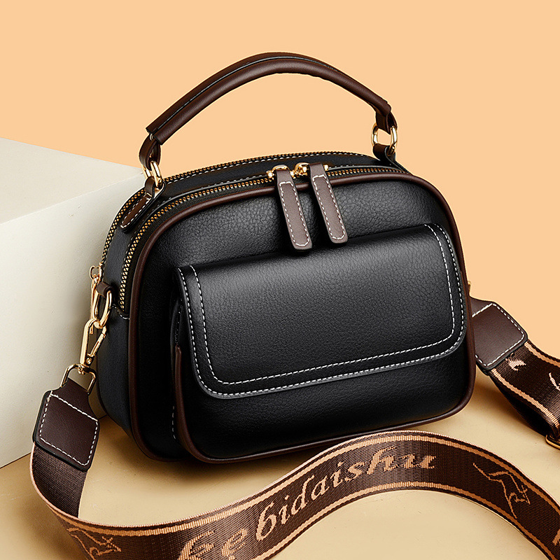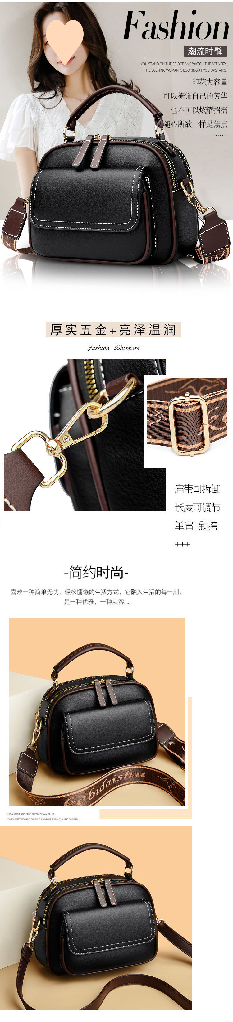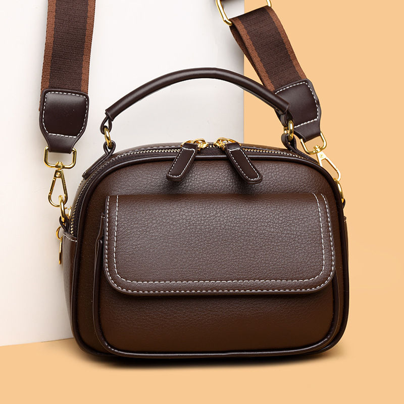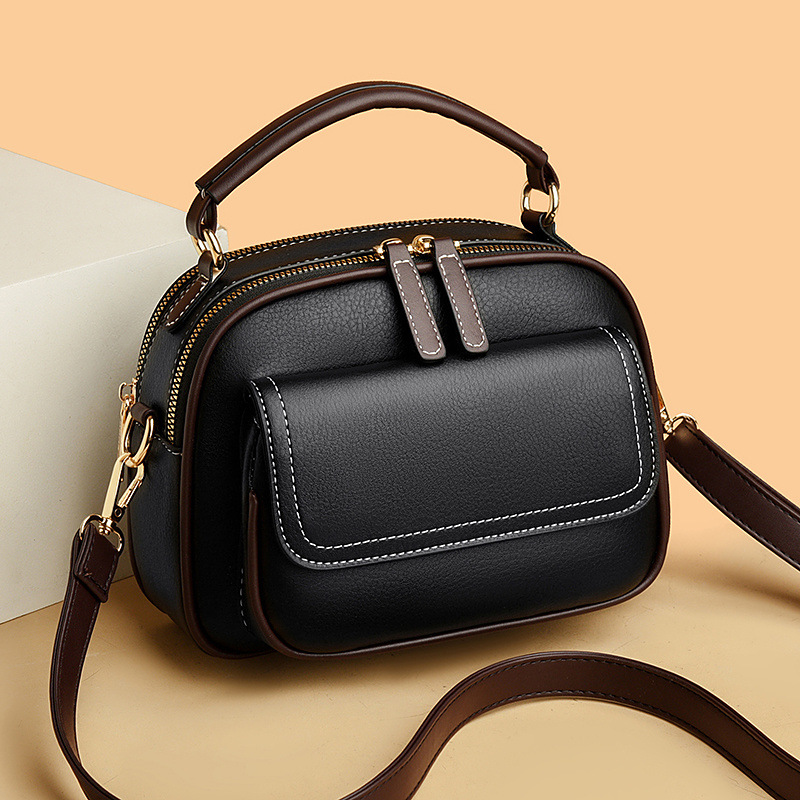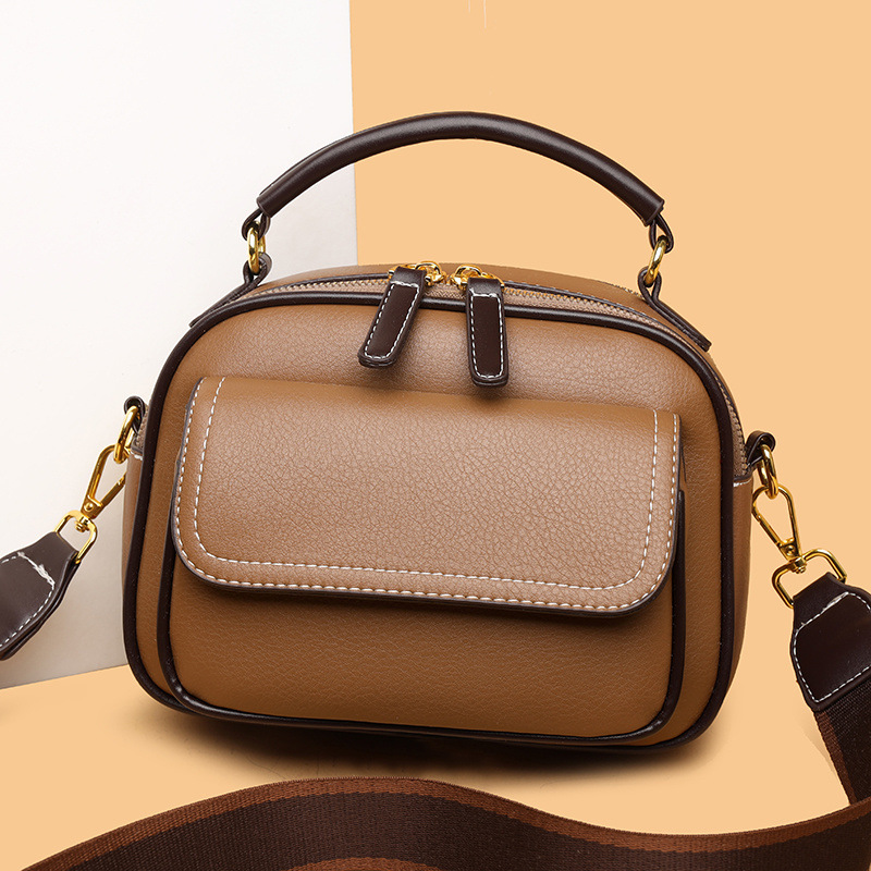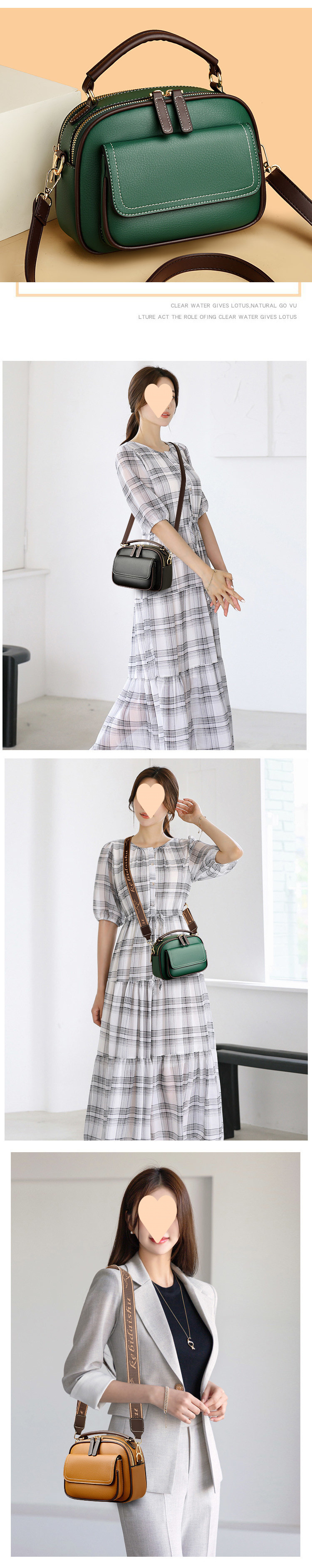 真皮包包女新款春夏纯色软把手提双层拉链大容量单肩斜挎包包