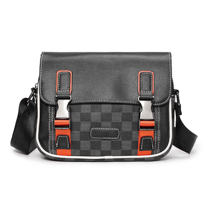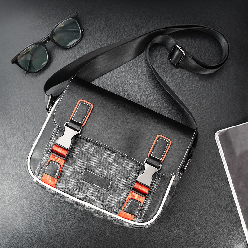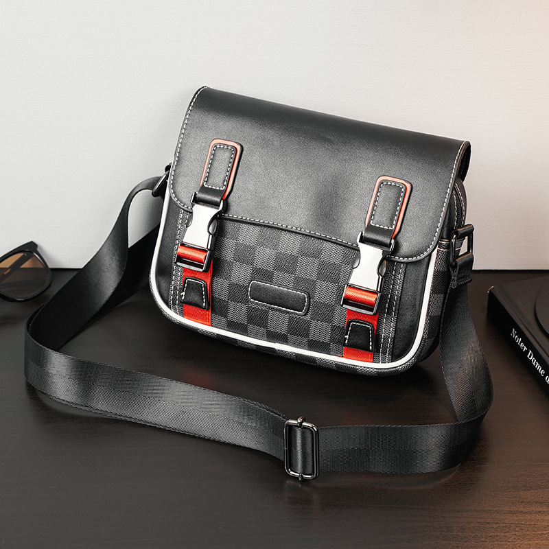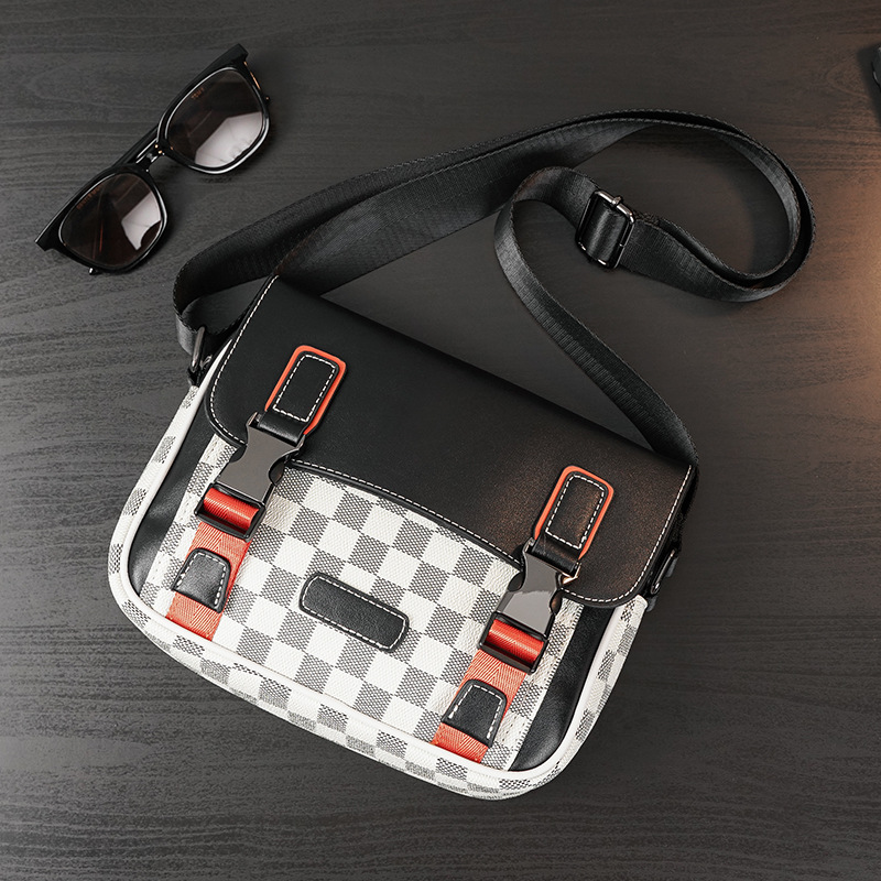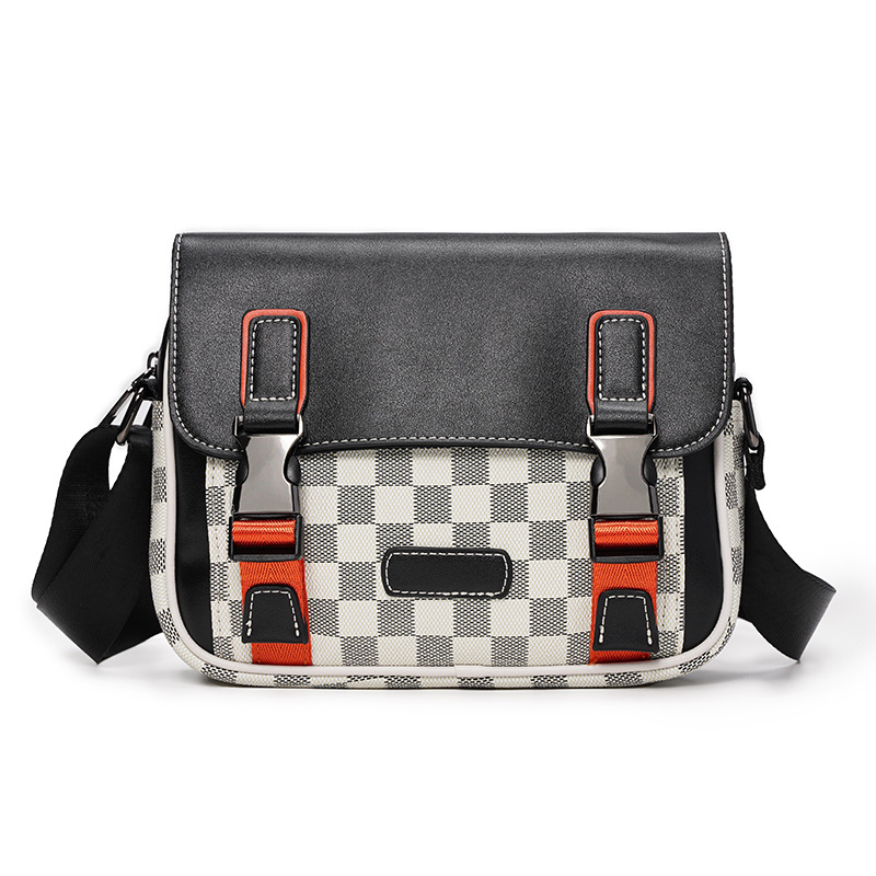 经典格纹男士邮差包横款小方包男包时尚百搭斜挎包通勤男挎包