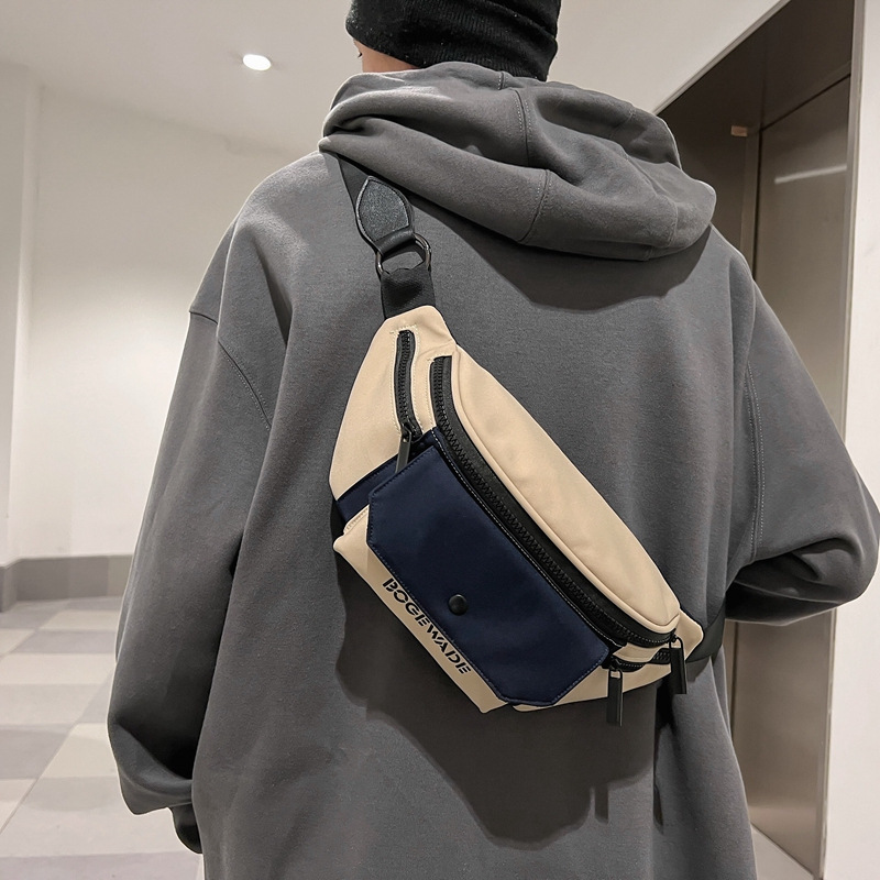 时尚拼色男士胸包运动休闲情侣斜挎包ins潮流单肩包日系简约挎包