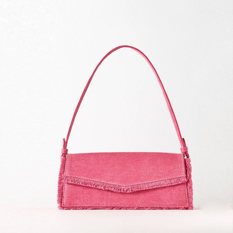 单肩包包女秋季新款潮百搭辣妹桃红色面料斜手提肩背包腋下包