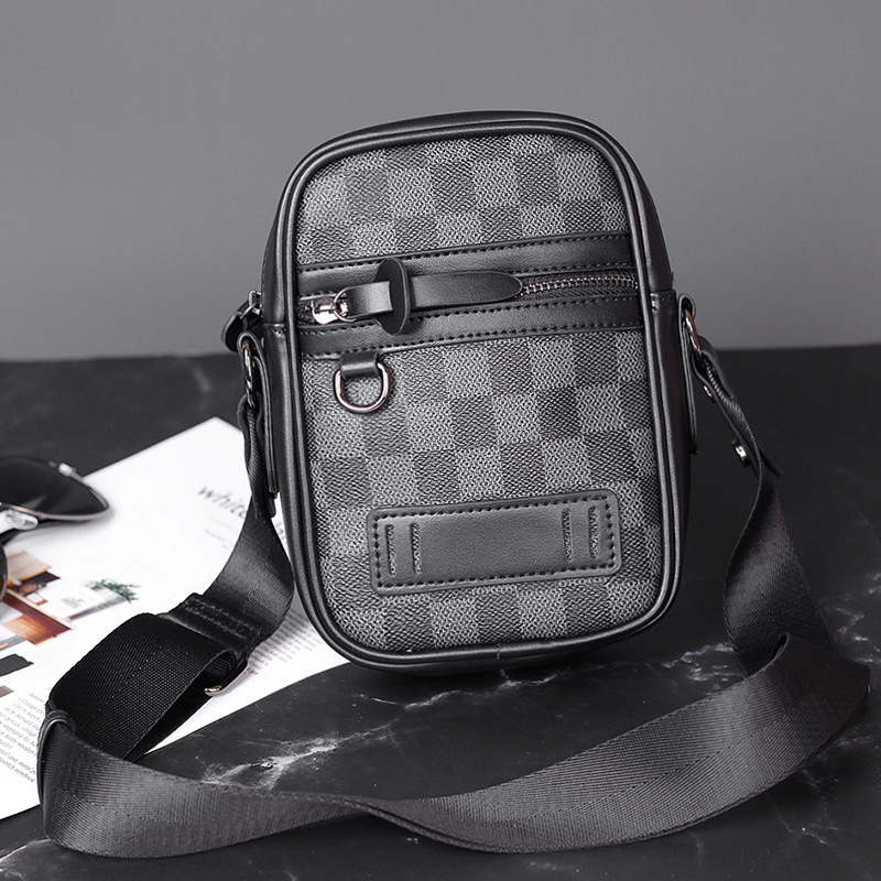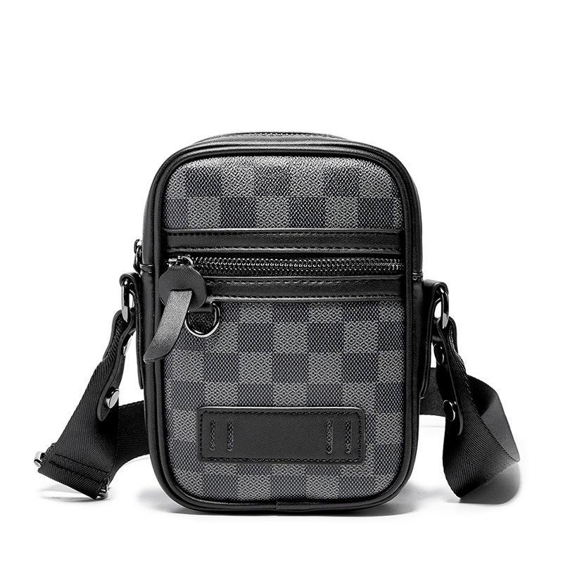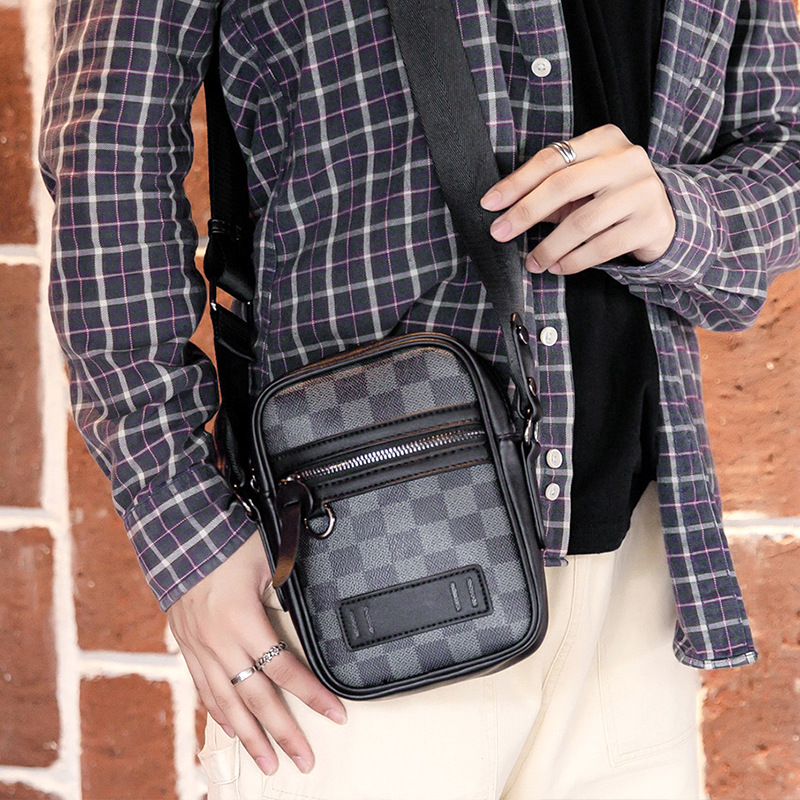男士竖款手机包经典简约格纹单肩包小包街头户外情侣挎包