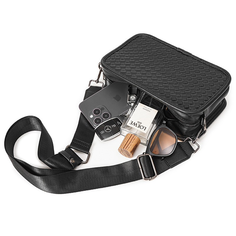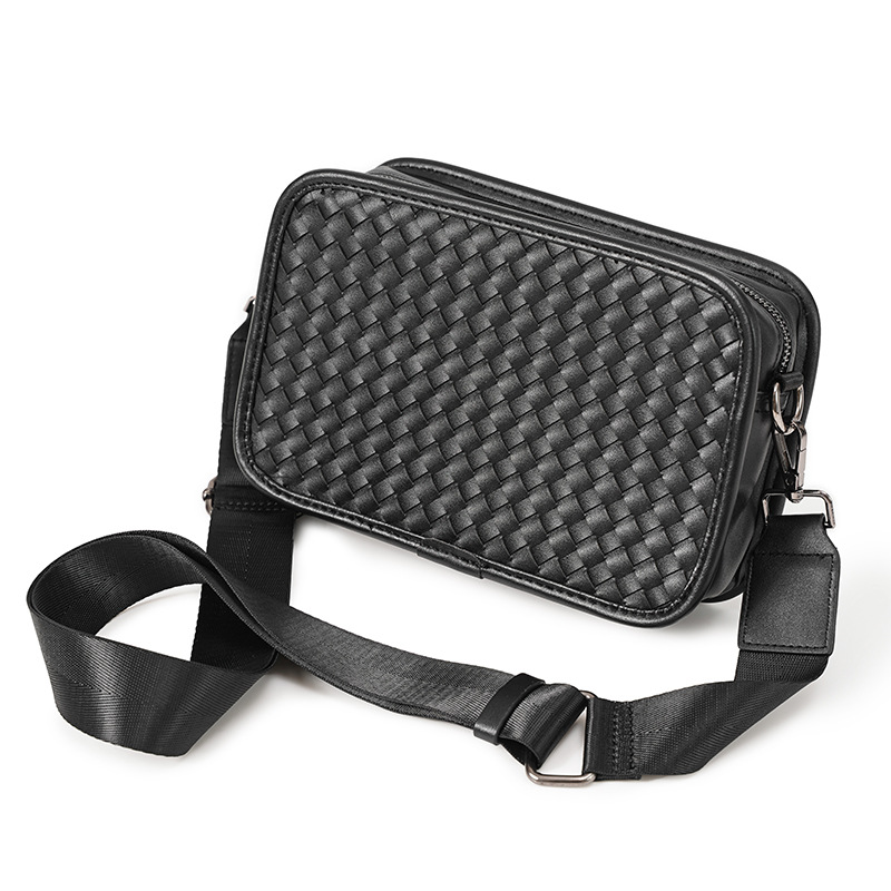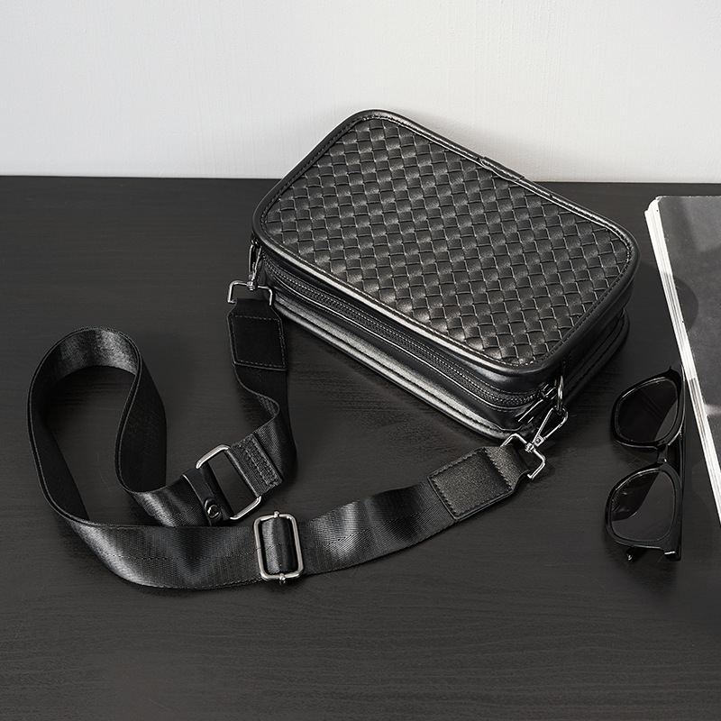 真编织男士通勤小方包 手工编织单肩包时尚小包男包街头休闲挎包
