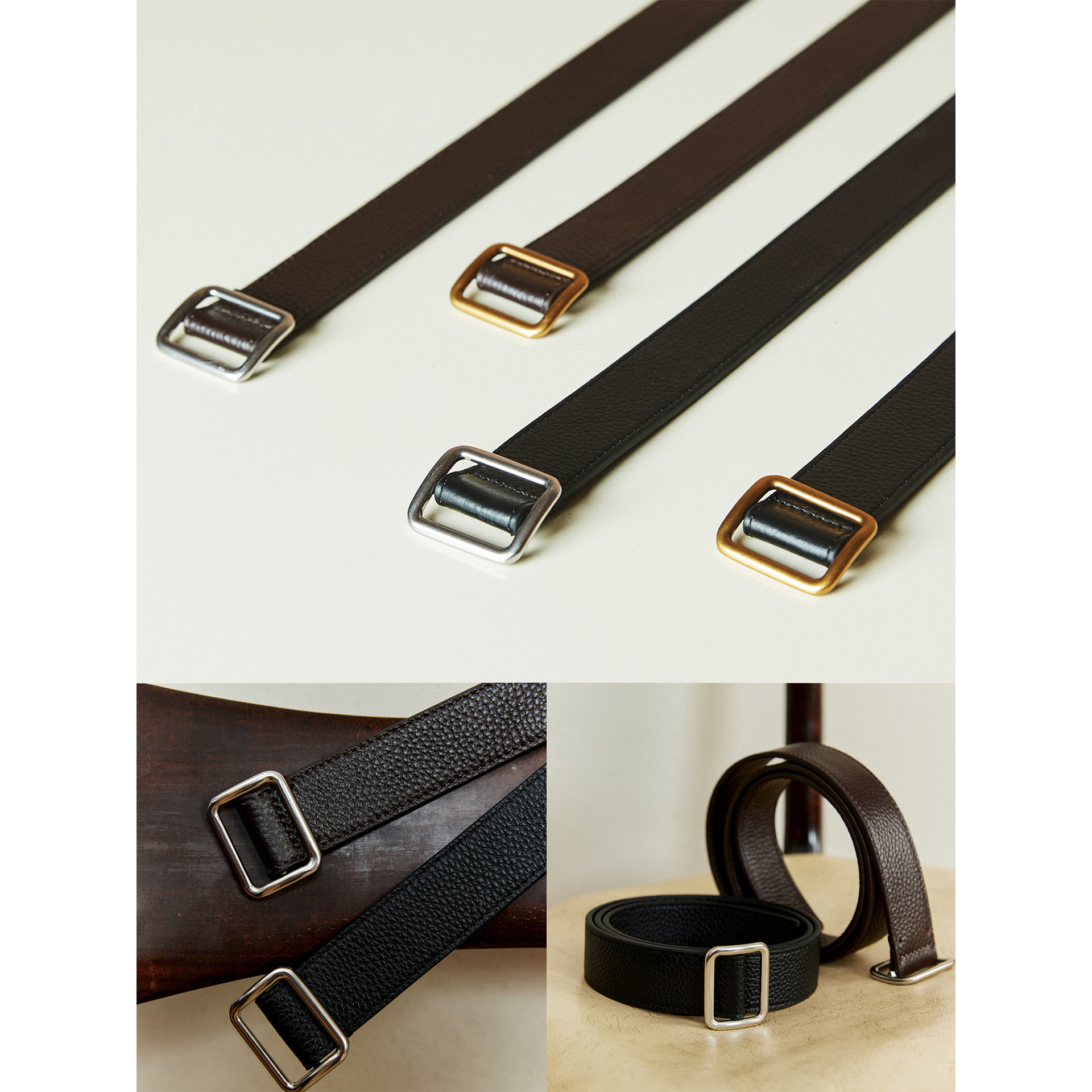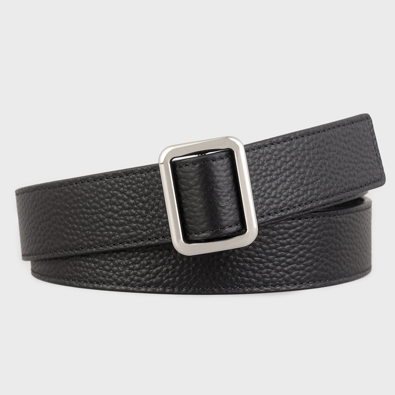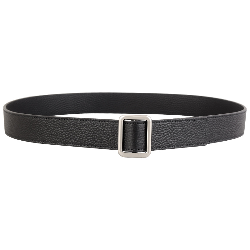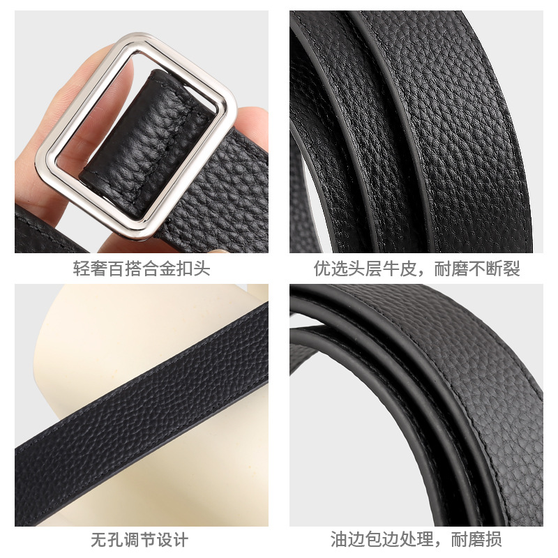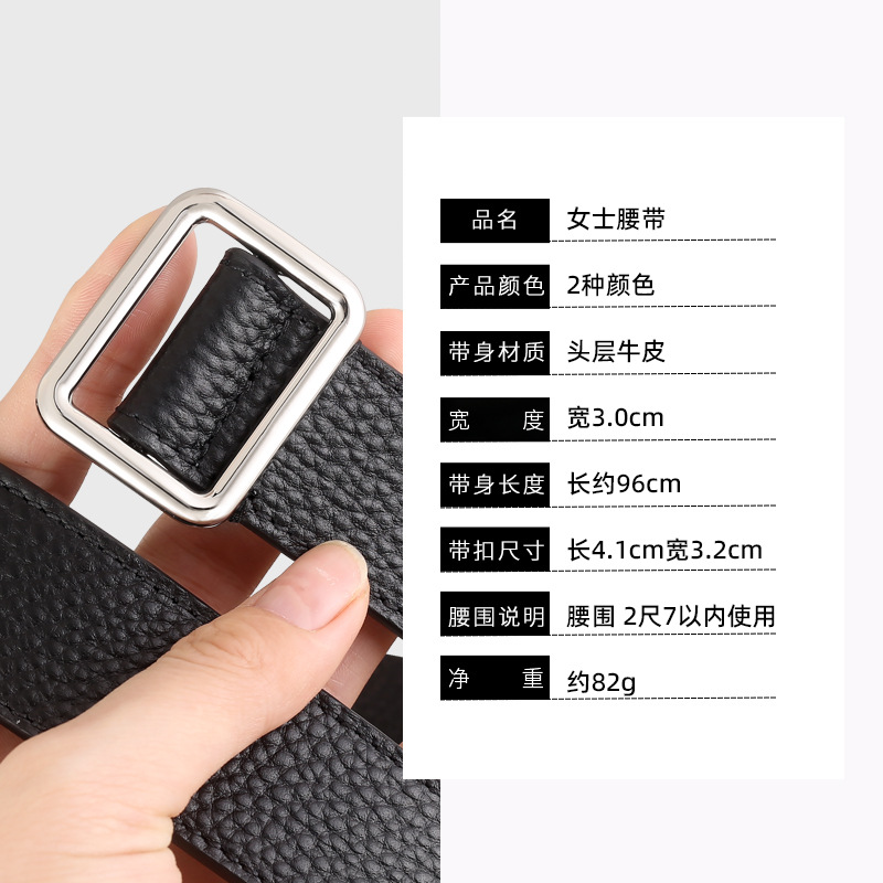 新款免打孔24极简双面头层牛皮荔枝纹R&W时髦方扣腰带女