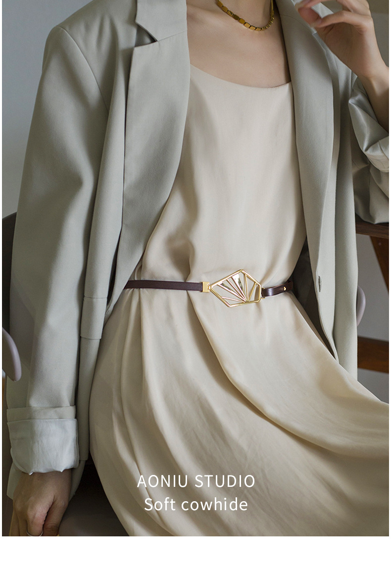 新款真皮细腰带女士女款几何五金扣时尚百搭裙子皮带
