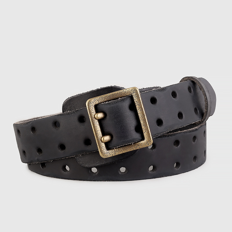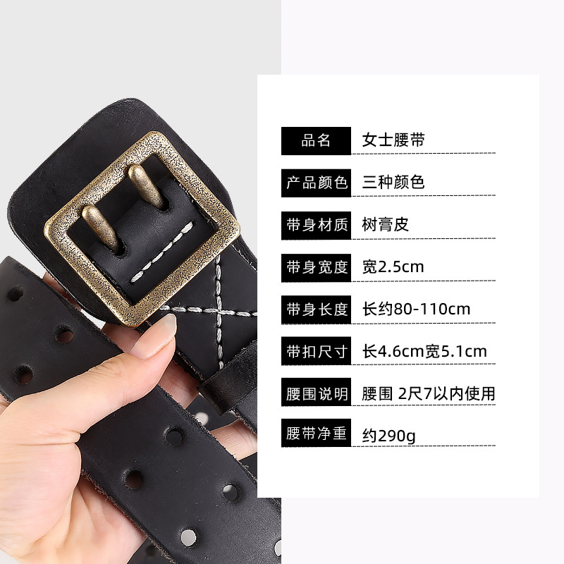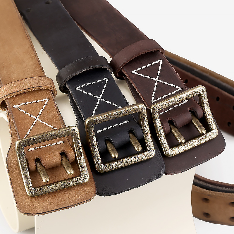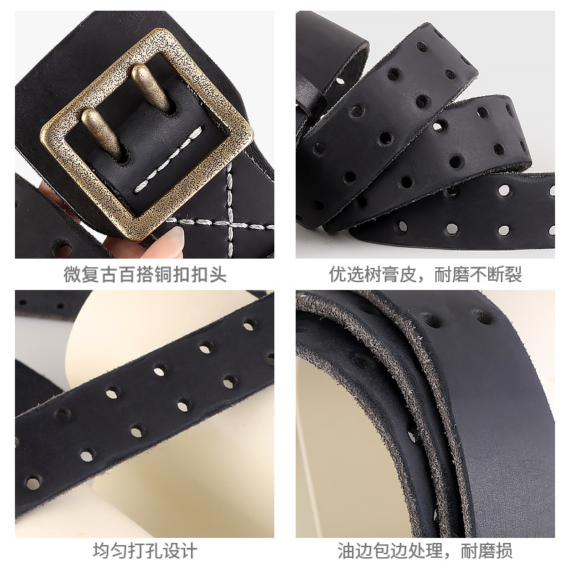 复古韩版潮流双针铜扣皮带男式时尚真皮防过敏裤腰带