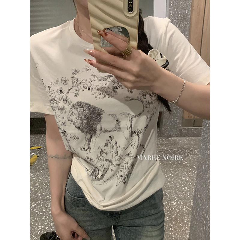 区别于市场!2025春夏季烫钻字母动物印花短袖修身显瘦正肩t恤女