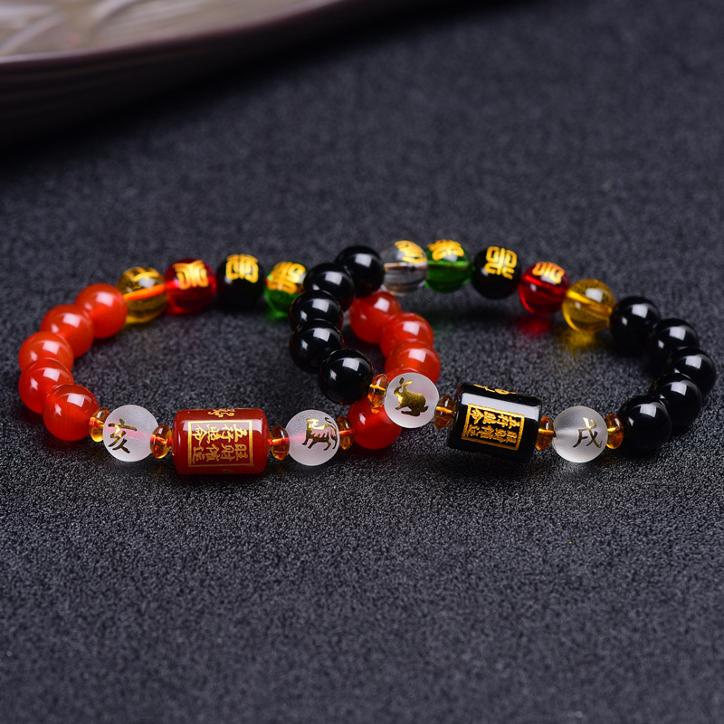 六合生肖手链红玛瑙手串黑曜石手链店主推荐生肖五行水晶手串