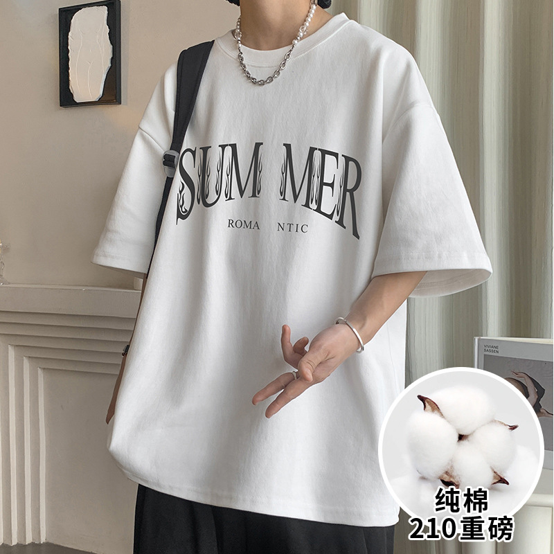 t恤男夏季日系宽松纯棉字母印花体恤重磅210g新款休闲短袖潮流ins