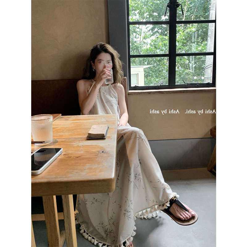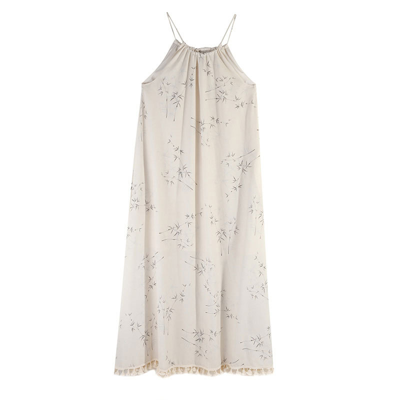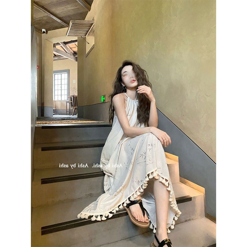 大于诗集新中式国风流苏步摇吊带连衣裙女垂坠感气质碎花长裙夏季