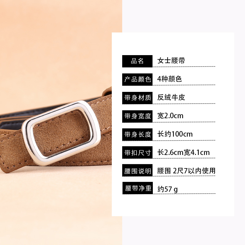新款皮带女真皮女士细腰带牛反绒百搭时尚装饰裤腰带