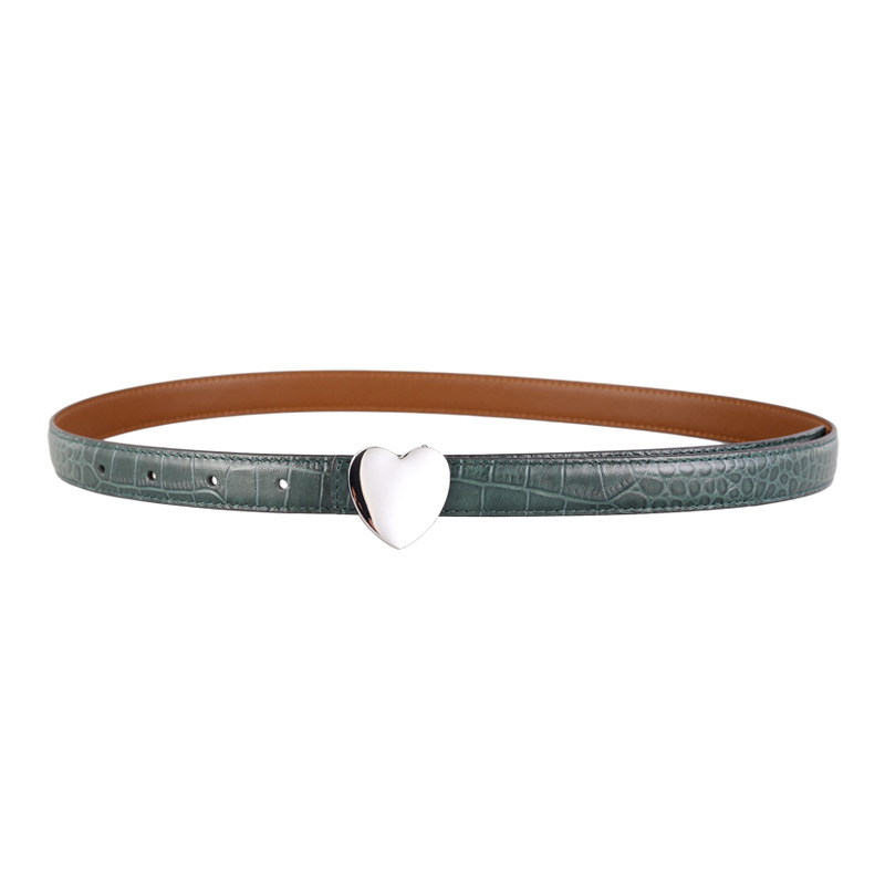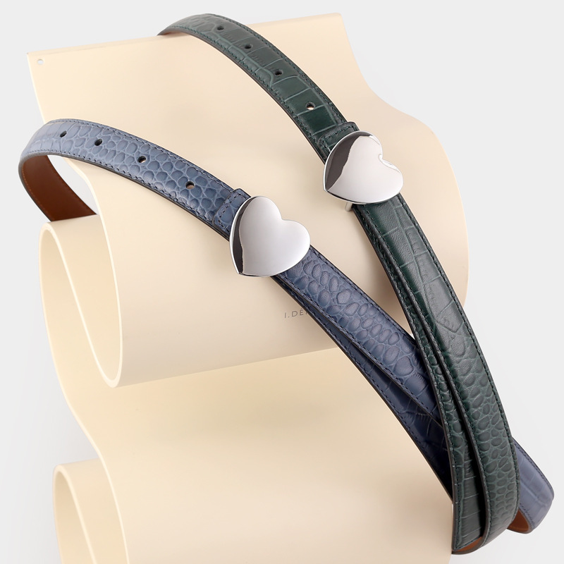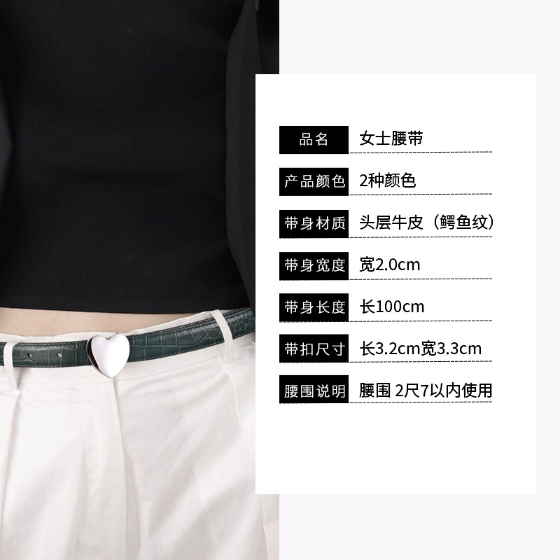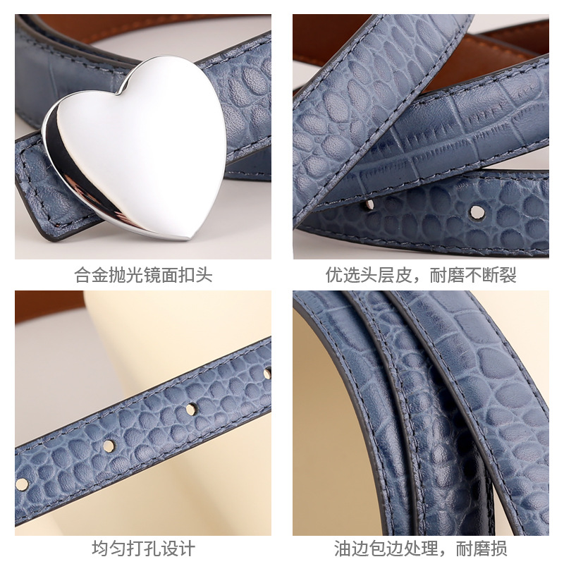 新款鳄鱼纹真皮女士皮带爱心按扣细腰带百搭裤腰带女