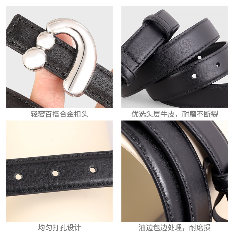 2025新款真皮女士腰带高级感豆豆扣百搭装饰牛仔裤腰带女
