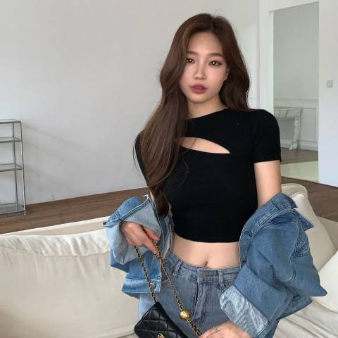 甜辣妹露胸短款露脐别致上衣设计感小众高腰紧身性感短袖t恤女夏