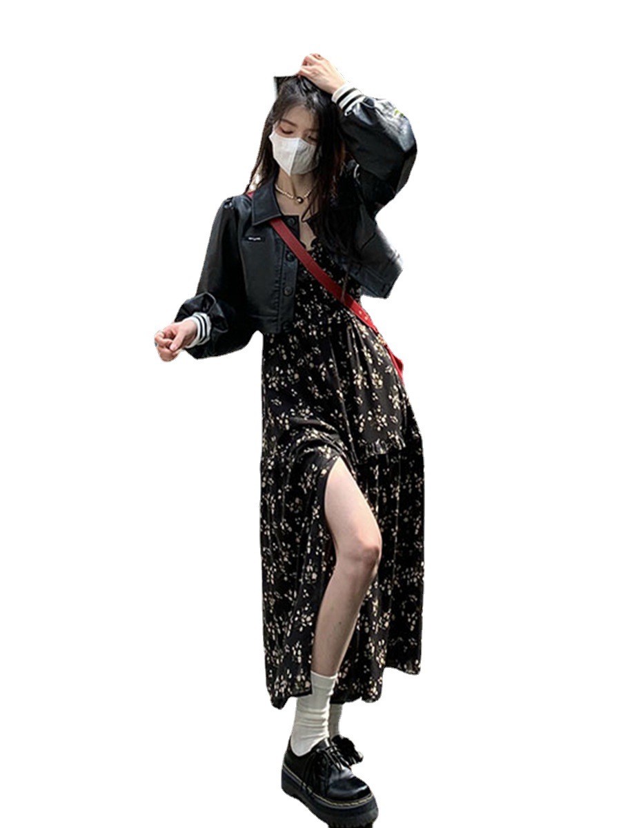 黑色吊带连衣裙女年夏季新款甜美印花裙碎花长裙法式连衣裙子