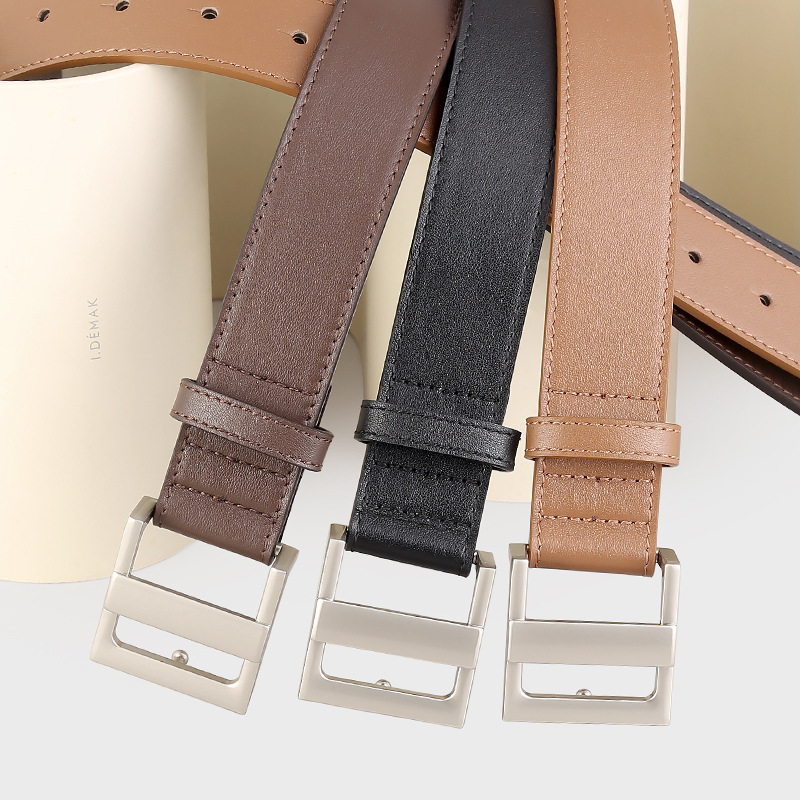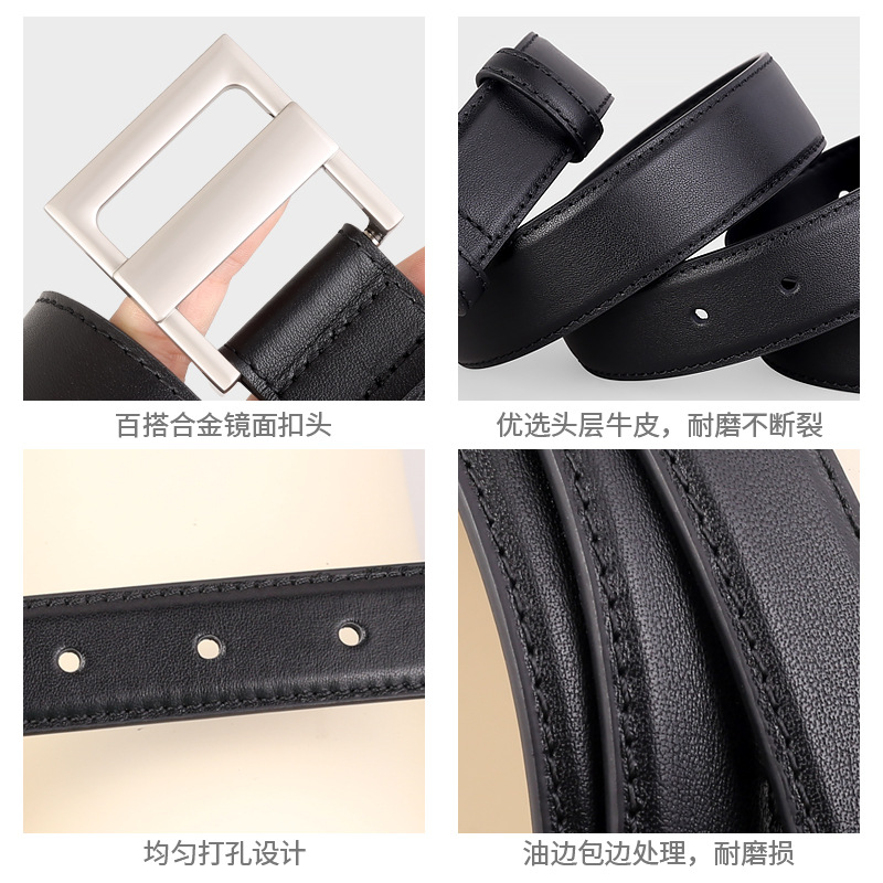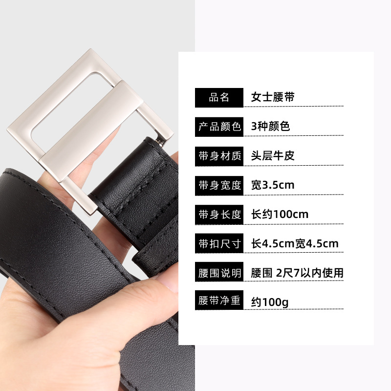 新款真皮皮带平滑日字扣百搭款宽腰带装饰配风衣牛仔裤带