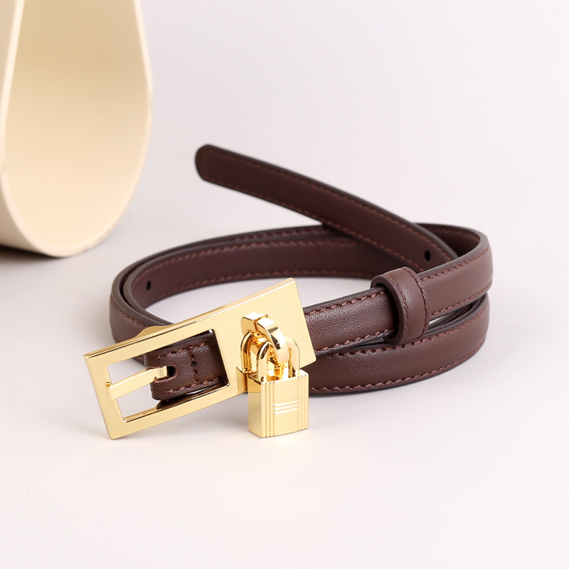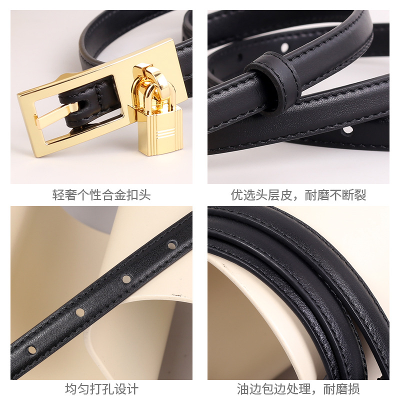 新款真皮细腰带女士锁扣时尚腰链装饰配裙子收腰百搭皮带