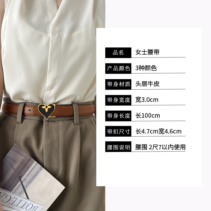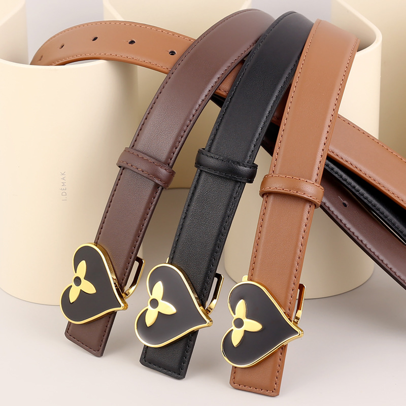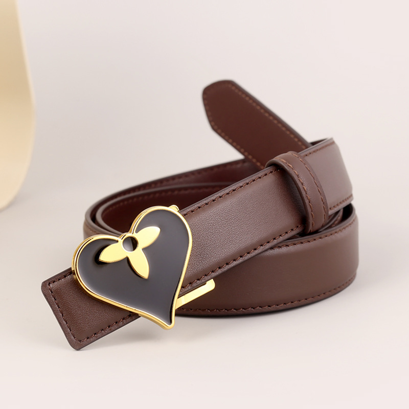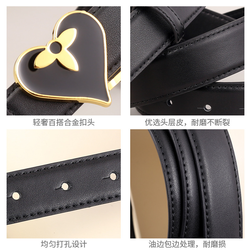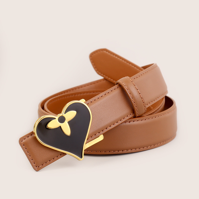 新款头层牛皮皮带简约复古爱心收腰腰带装饰西装裤带
