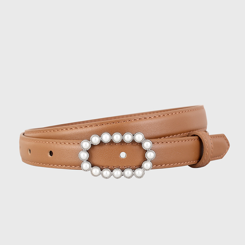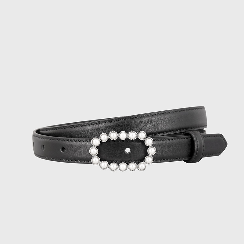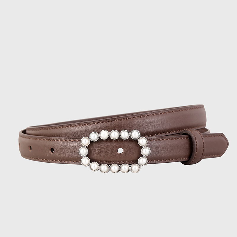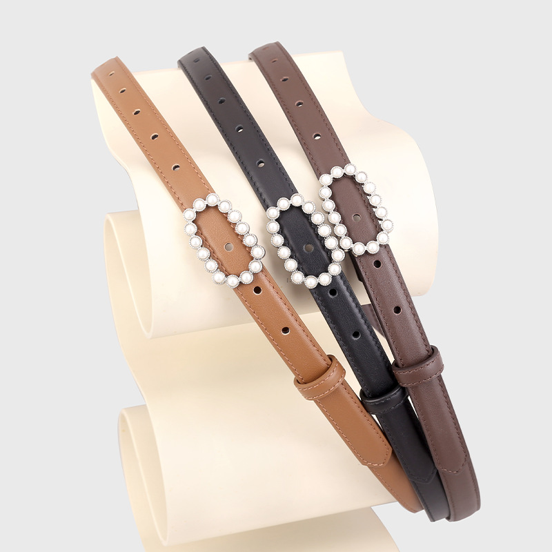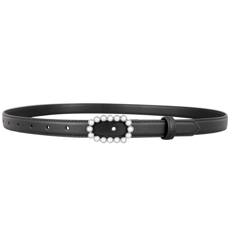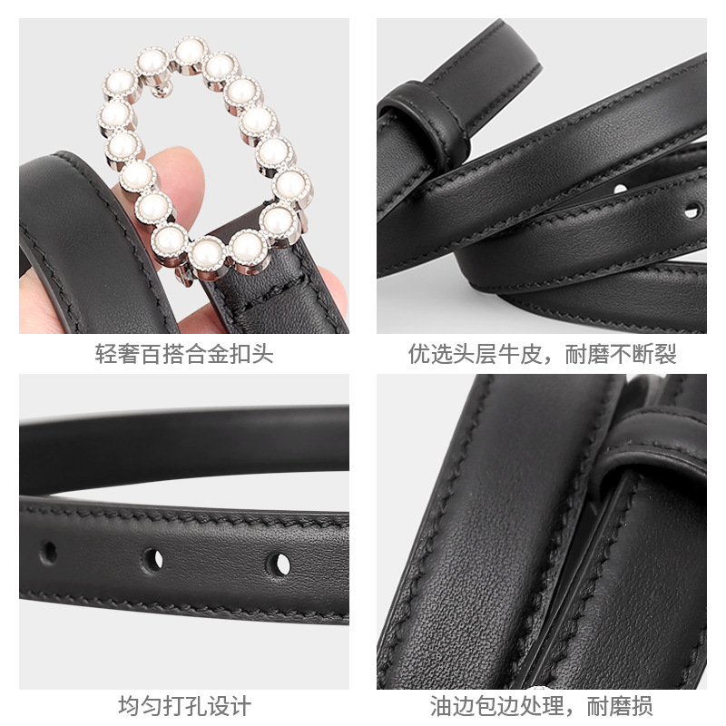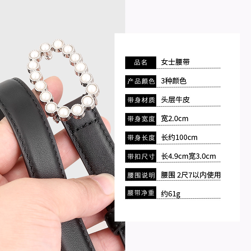 热卖小众头层牛皮真皮珍珠镶钻扣裤腰带女士皮带腰封