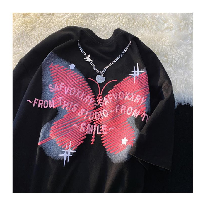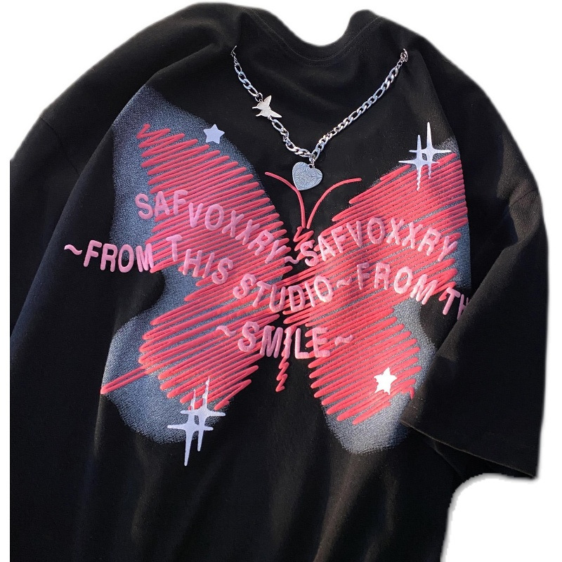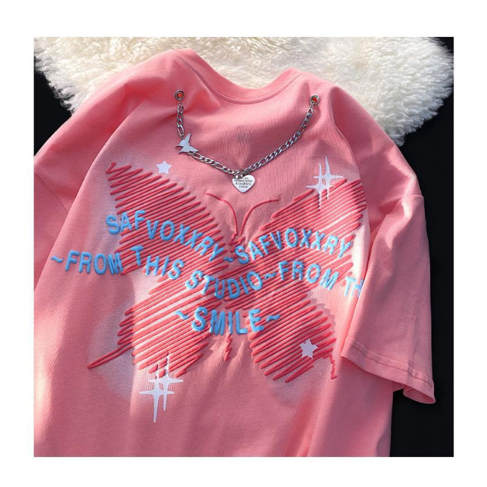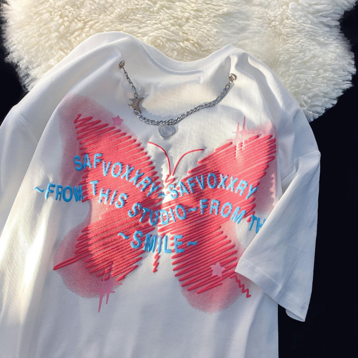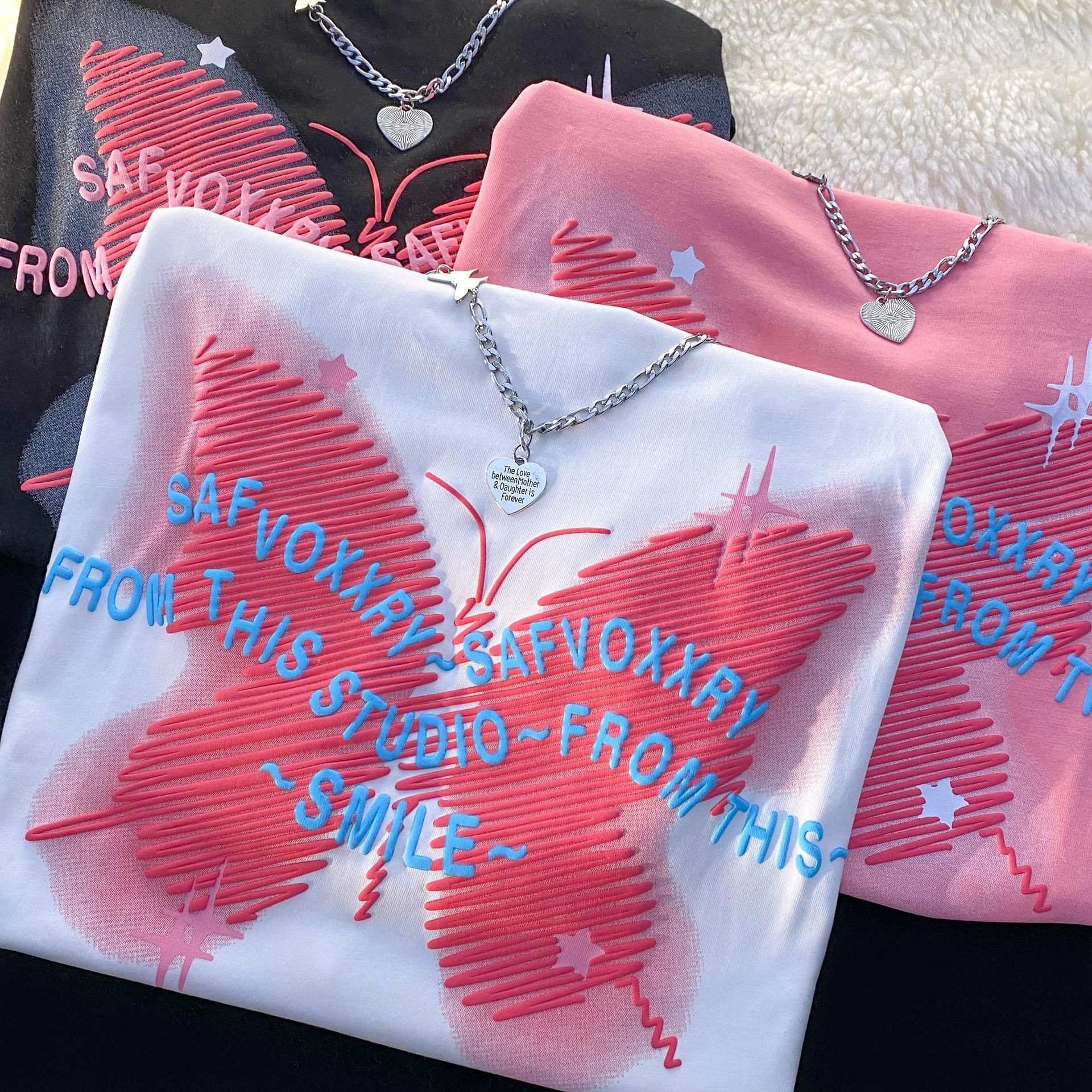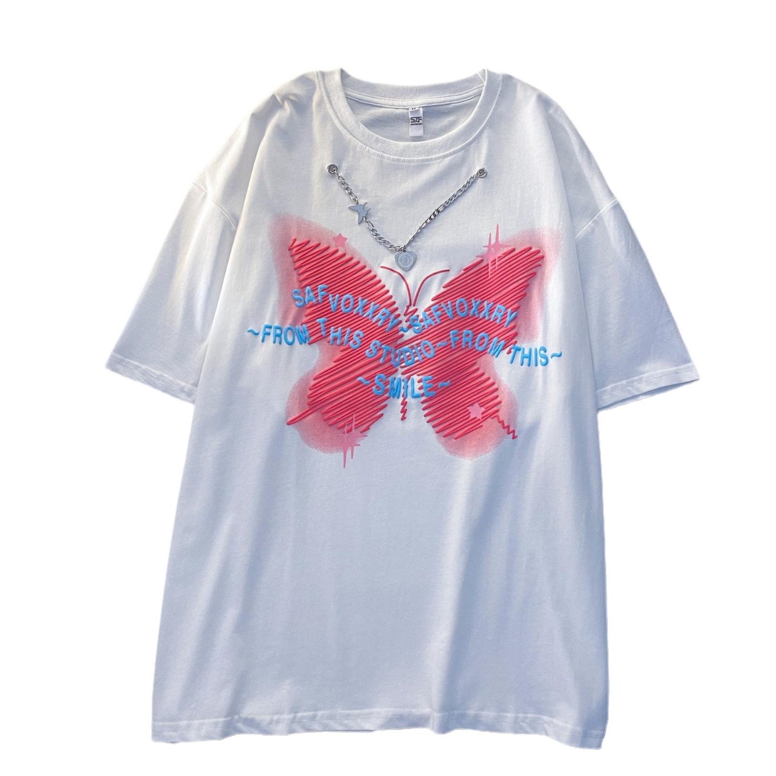 重磅纯棉甜酷蝴蝶结项链设计感短袖T恤女夏季百搭情侣上衣潮