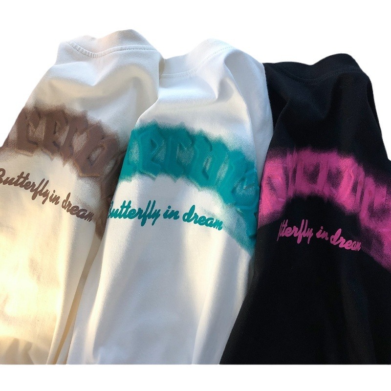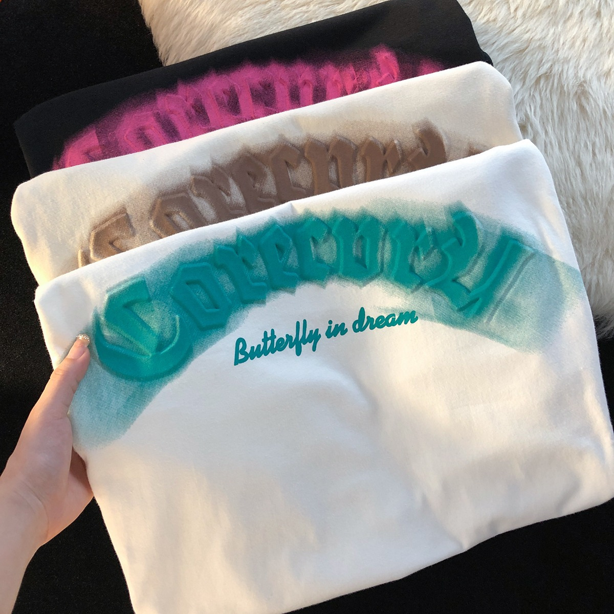 复古自制凹凸字母设计感短袖T恤立体印花ins超火潮牌上衣男女bf风