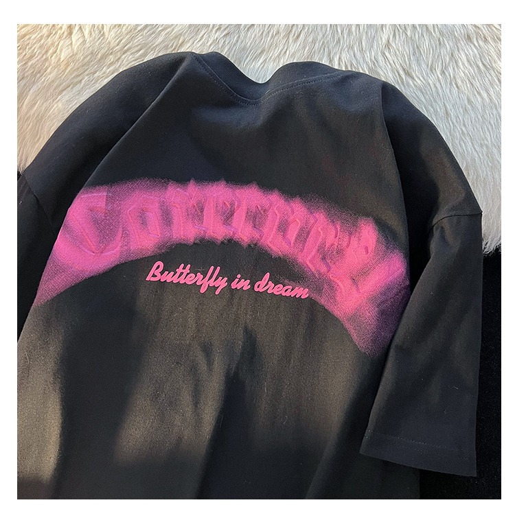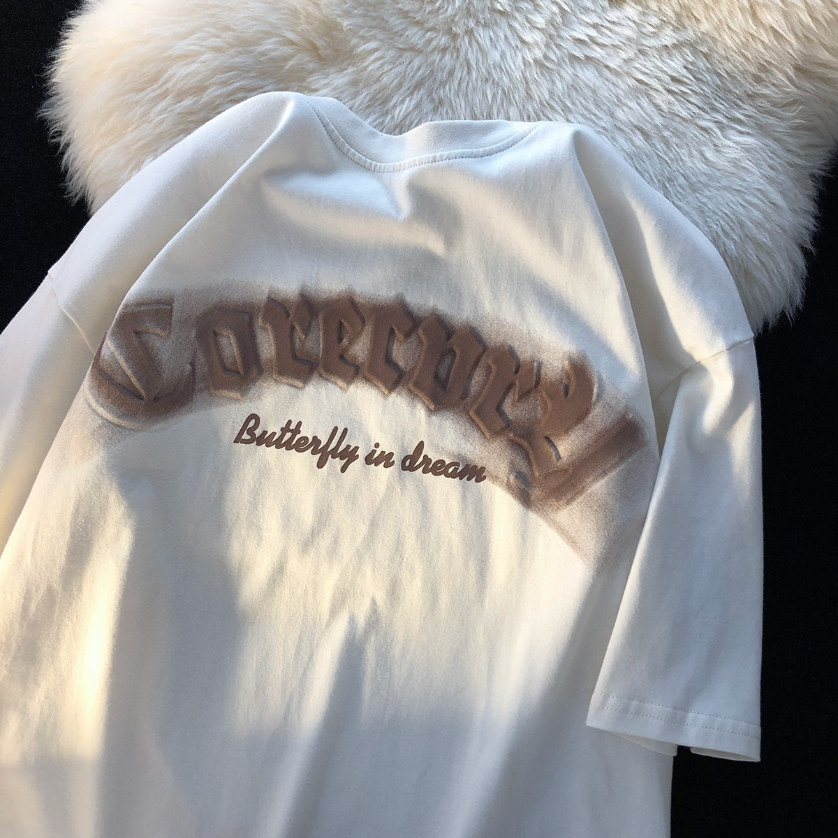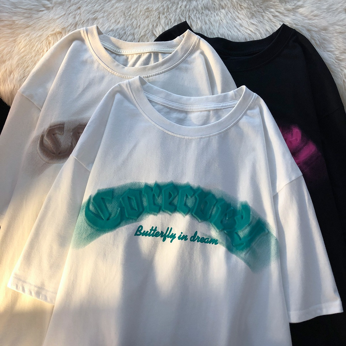夏季新款原宿复古创意文字圆领休闲半袖宽松情侣短袖t恤女潮DT004