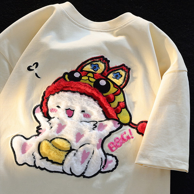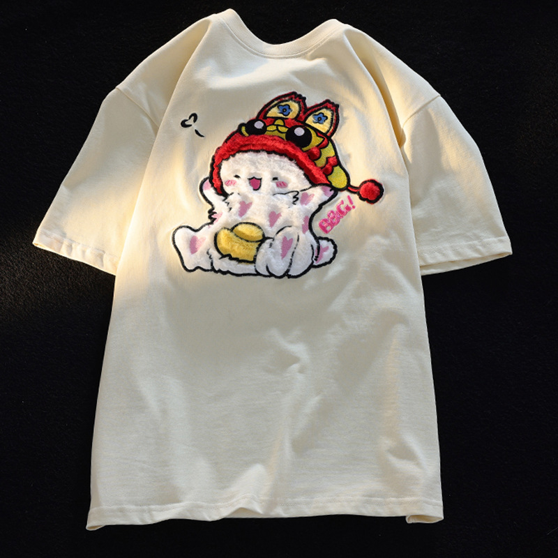 QFD-高级纯棉短袖T恤女夏季国潮学院风减龄兔子甜美小众百搭上衣