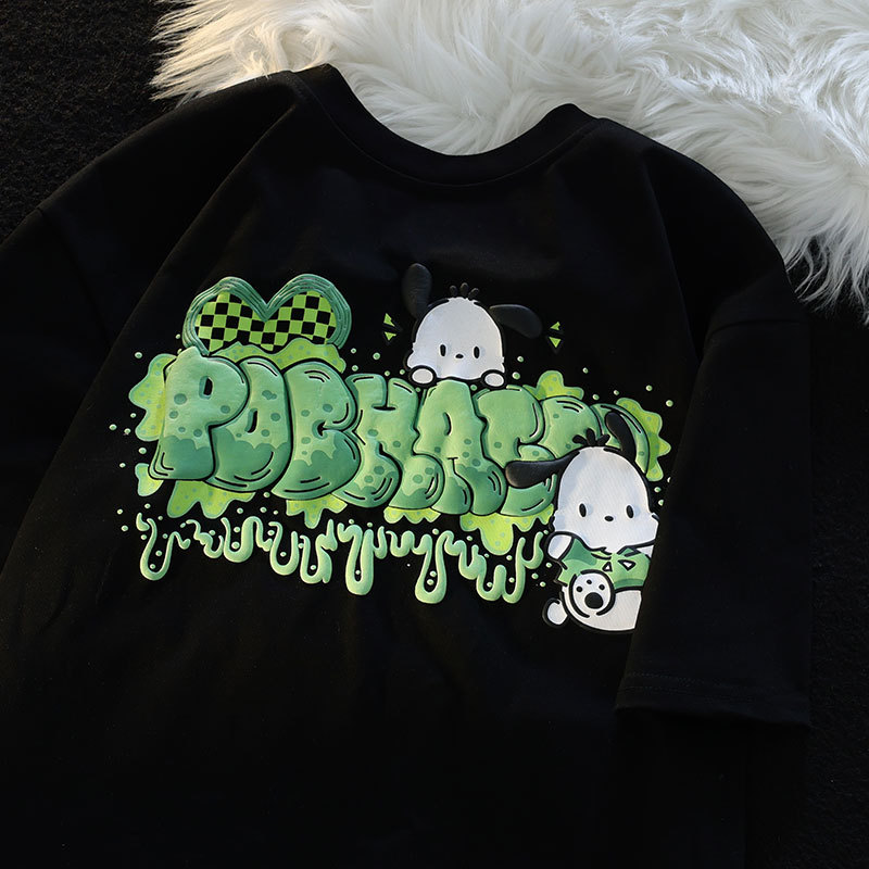 100%纯棉帕恰狗短袖t恤女夏季宽松oversize学院甜酷半袖上衣情侣