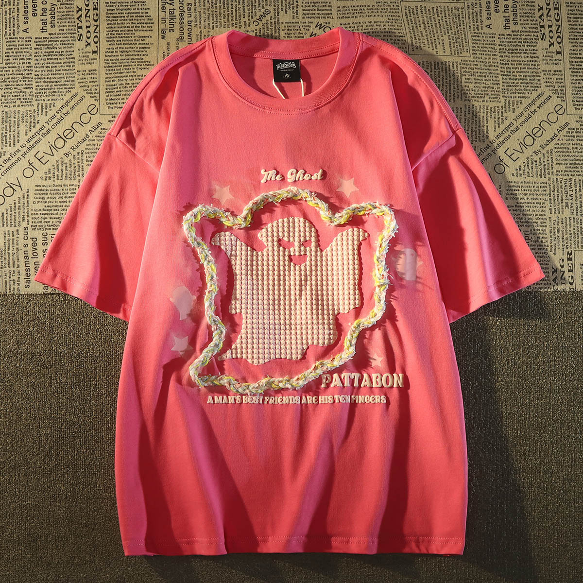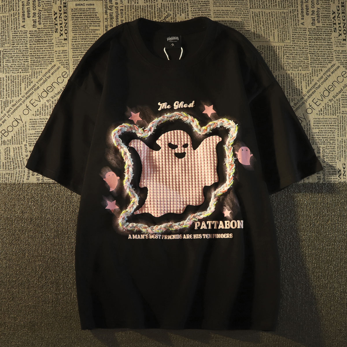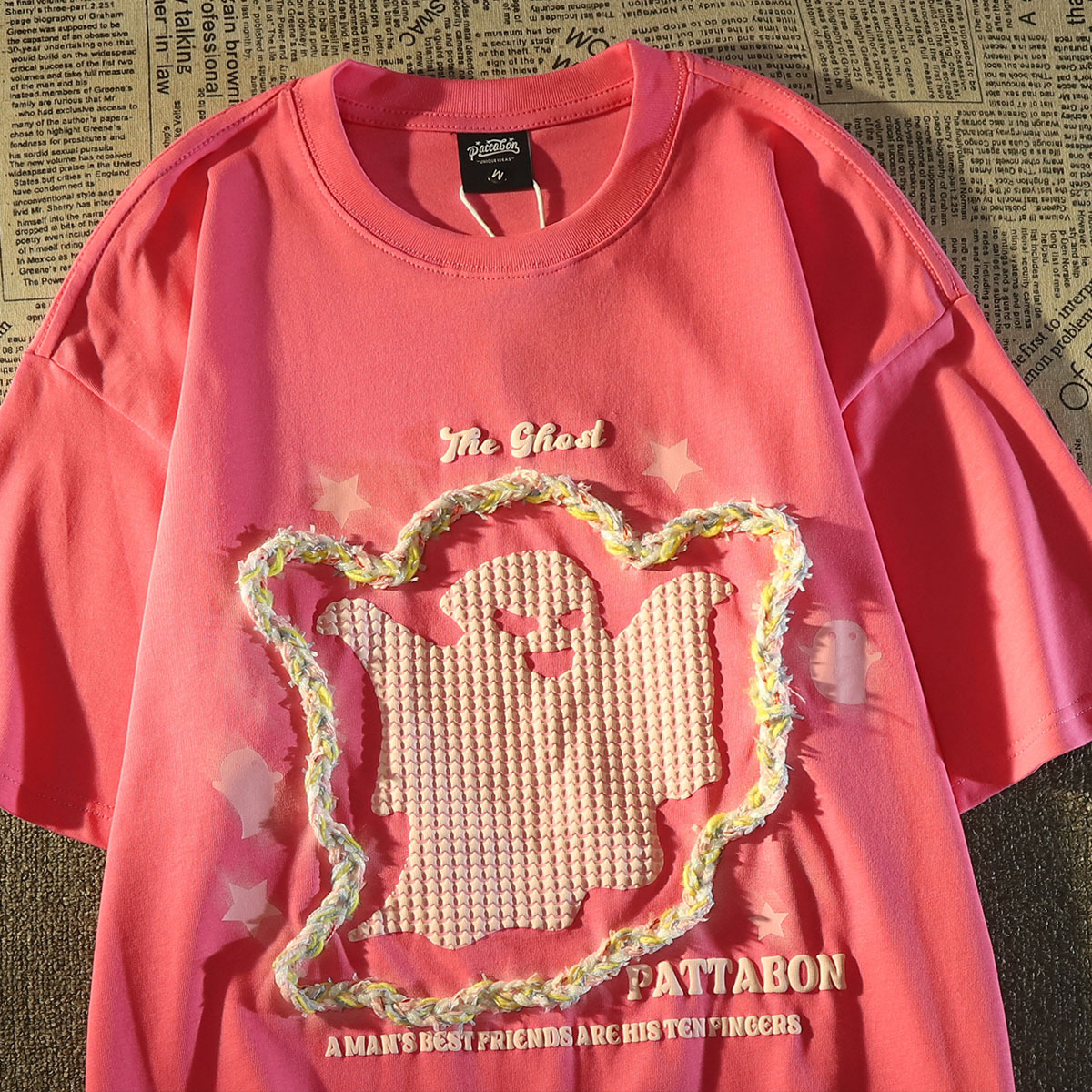 100%纯棉美式小幽灵刺绣短袖t恤女夏季新款可爱情侣半袖上衣
