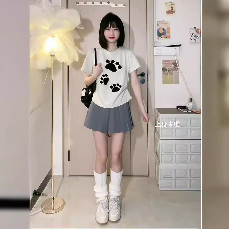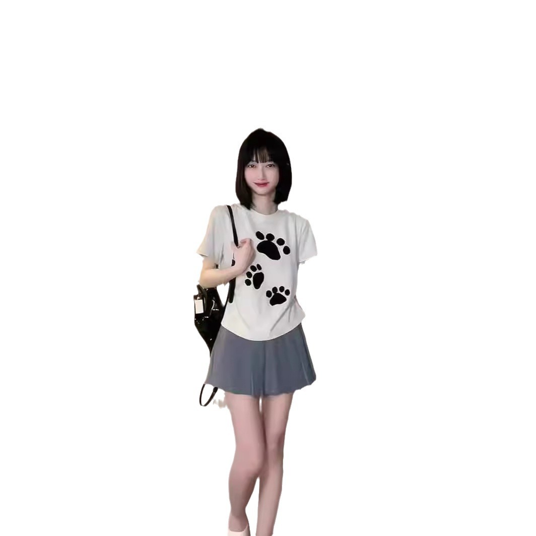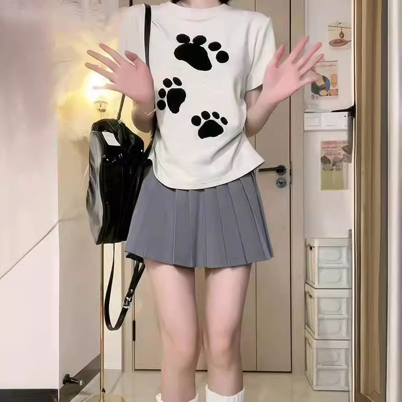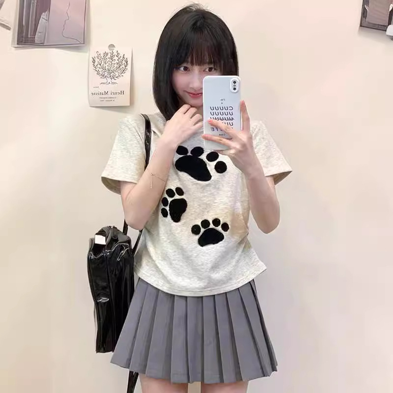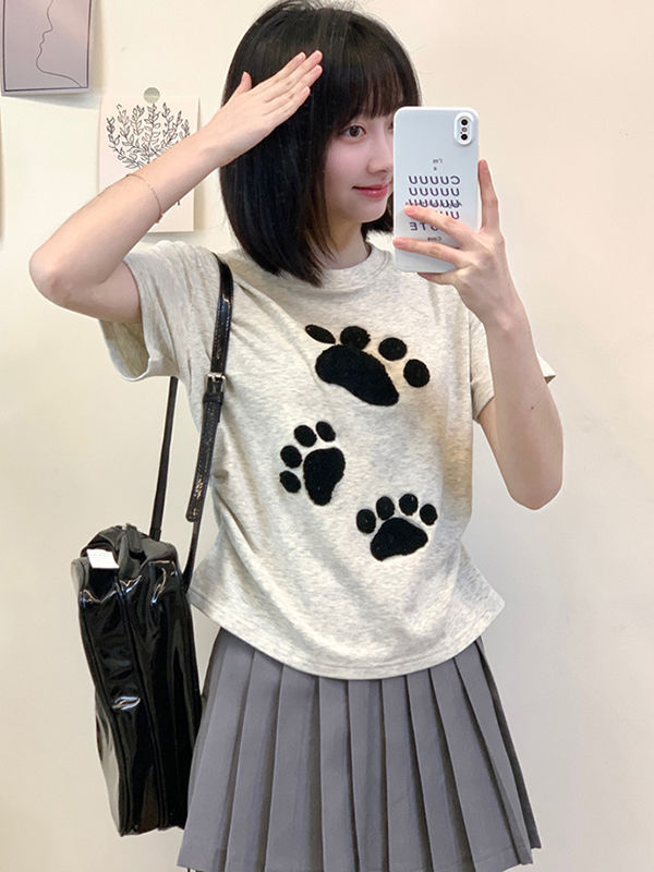 植绒卡通猫爪短袖女小个子甜妹显高短款显瘦正肩T恤夏季新款