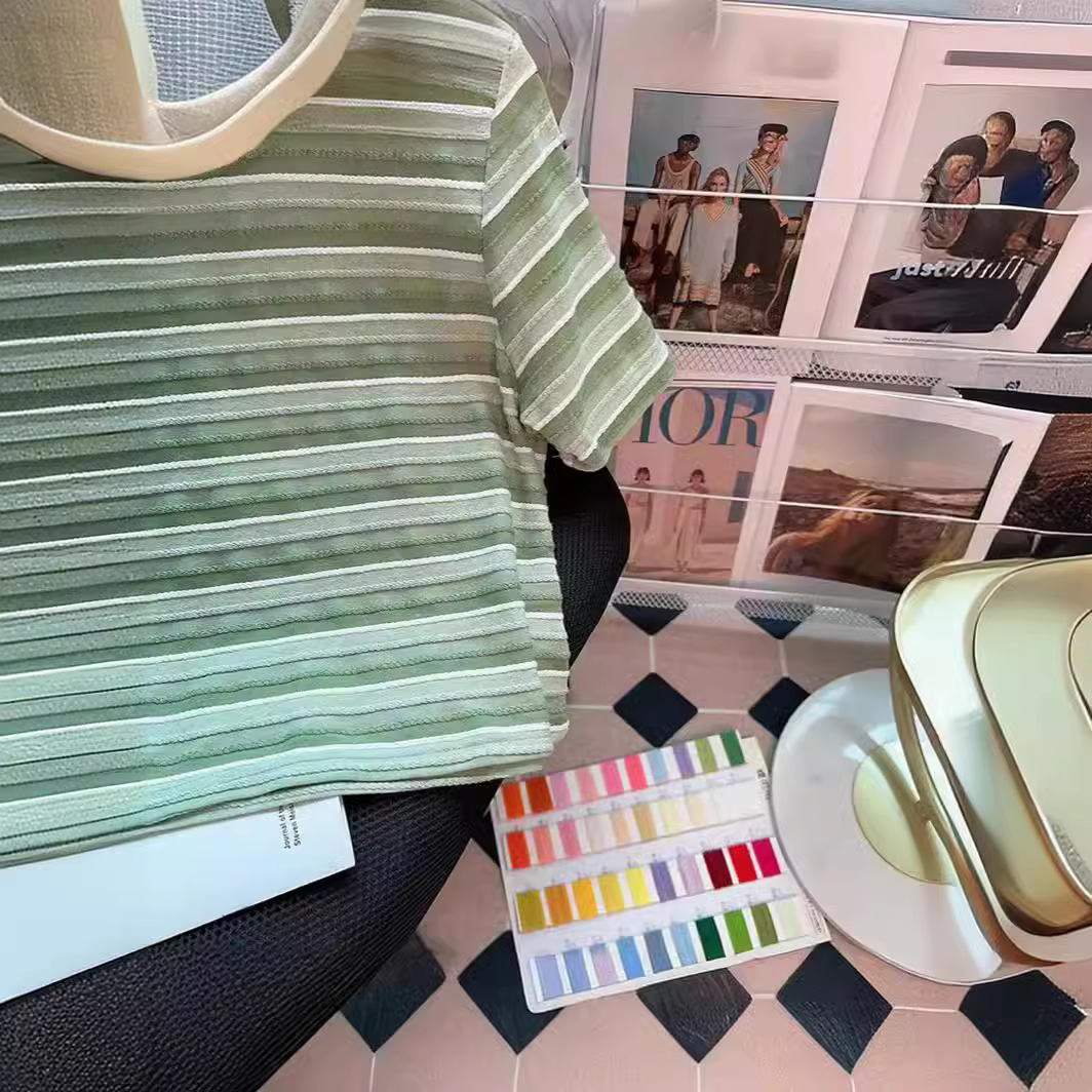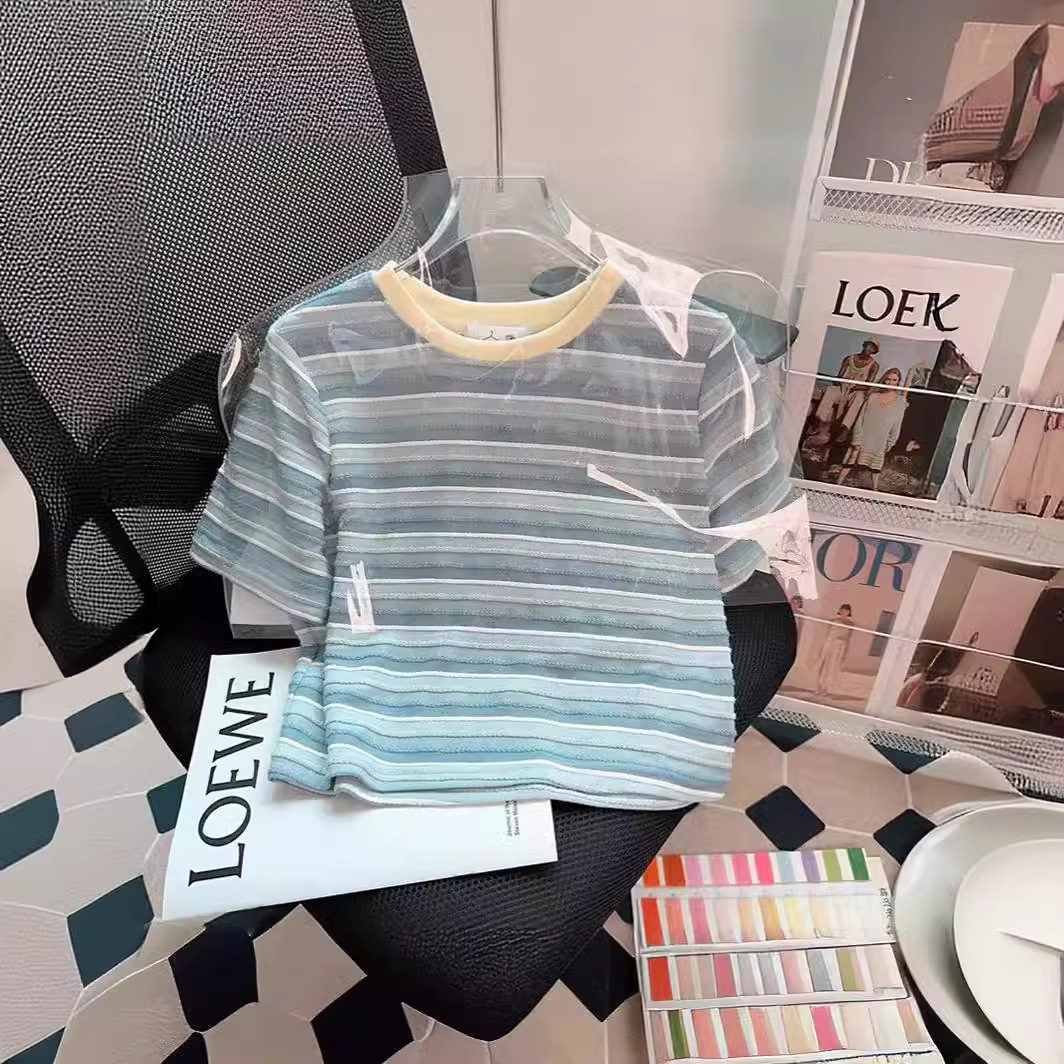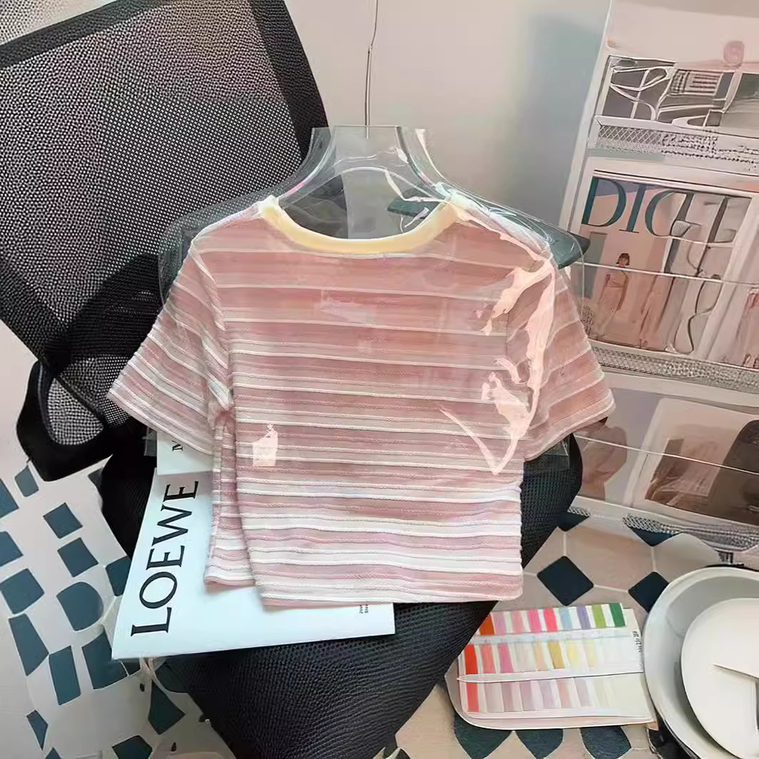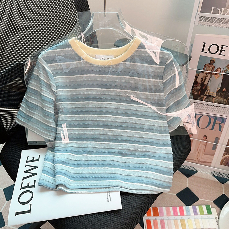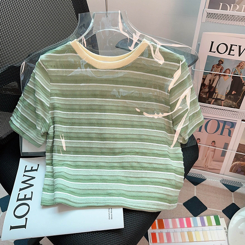 宽松短款t恤女夏薄款新款显瘦百搭条纹圆领打底短袖上衣ins潮