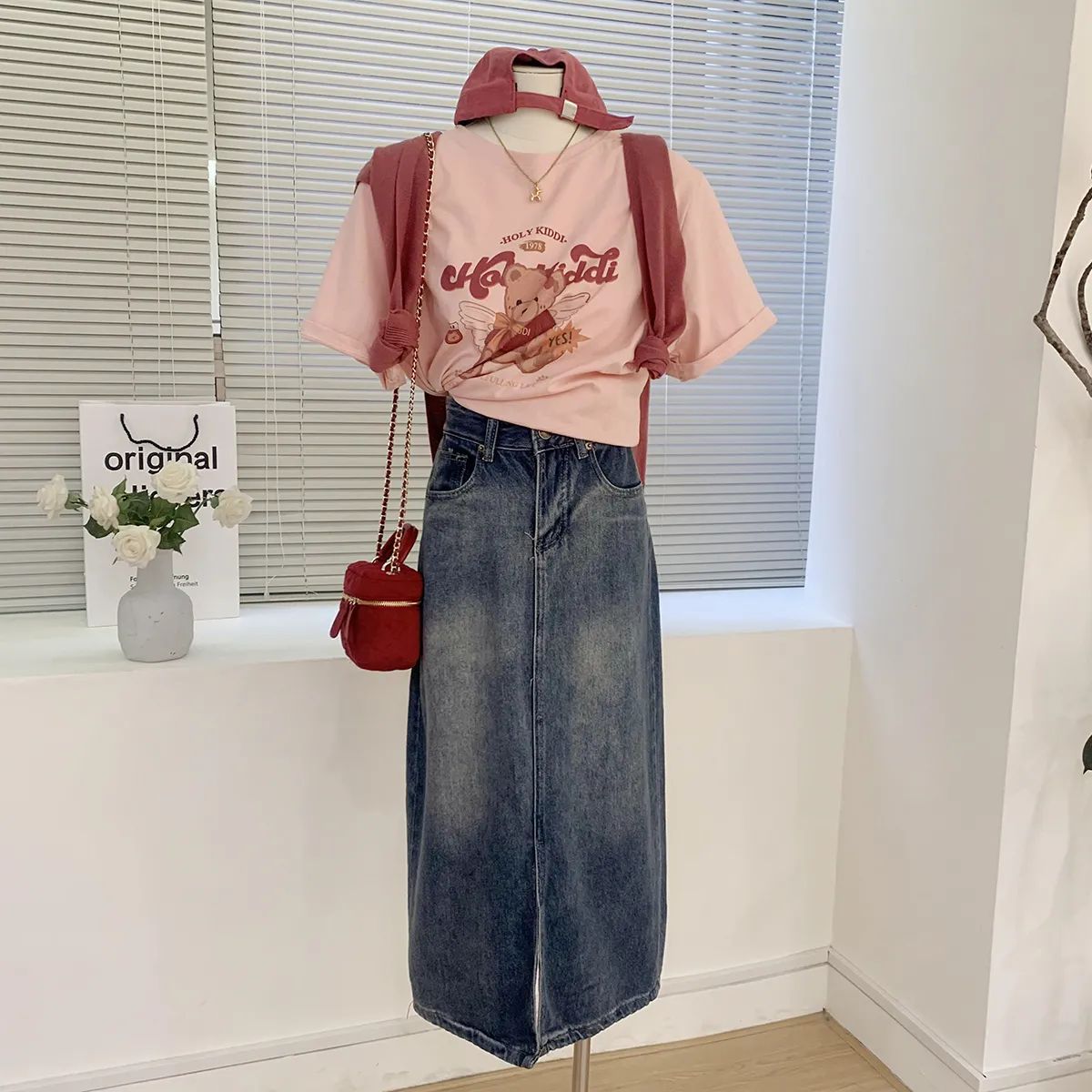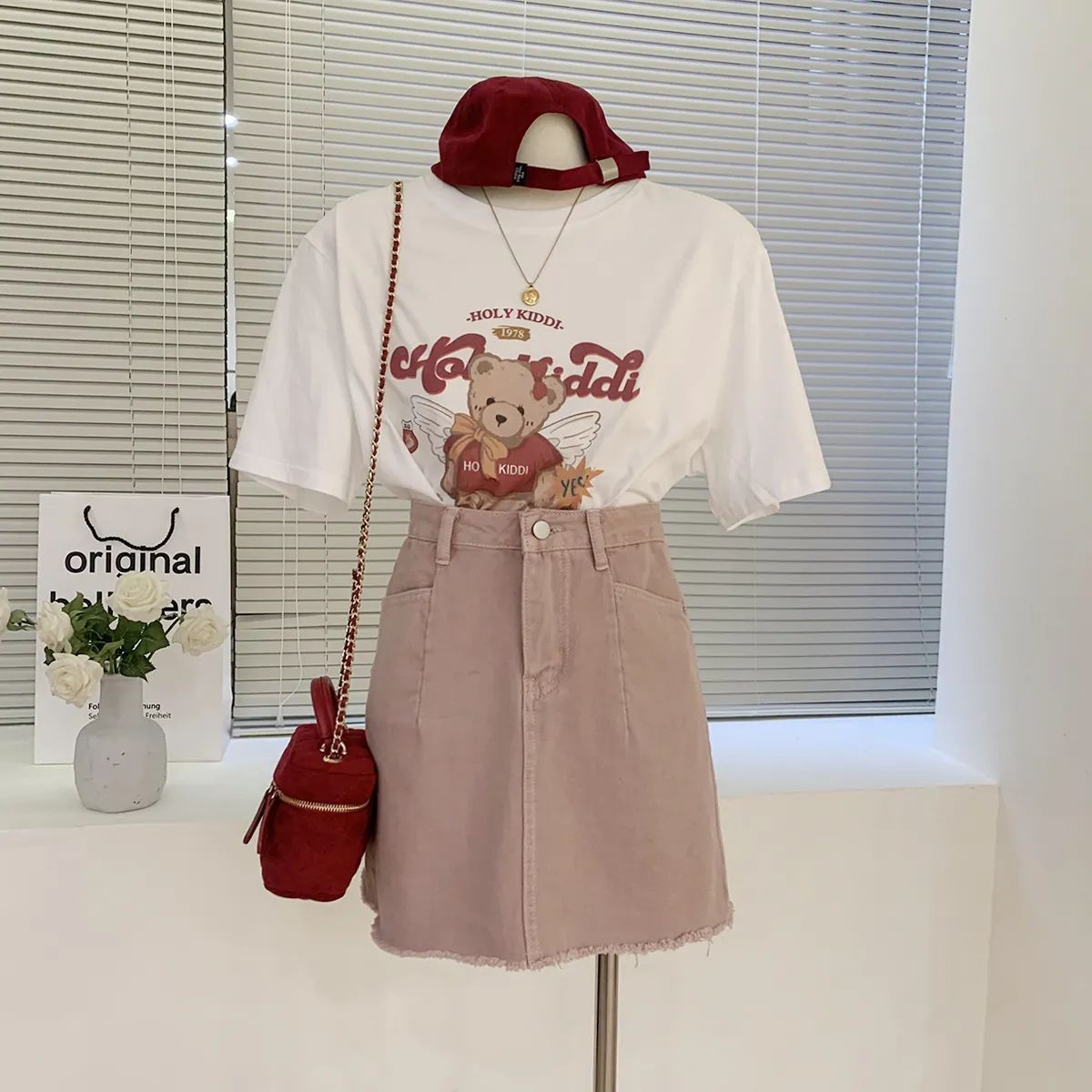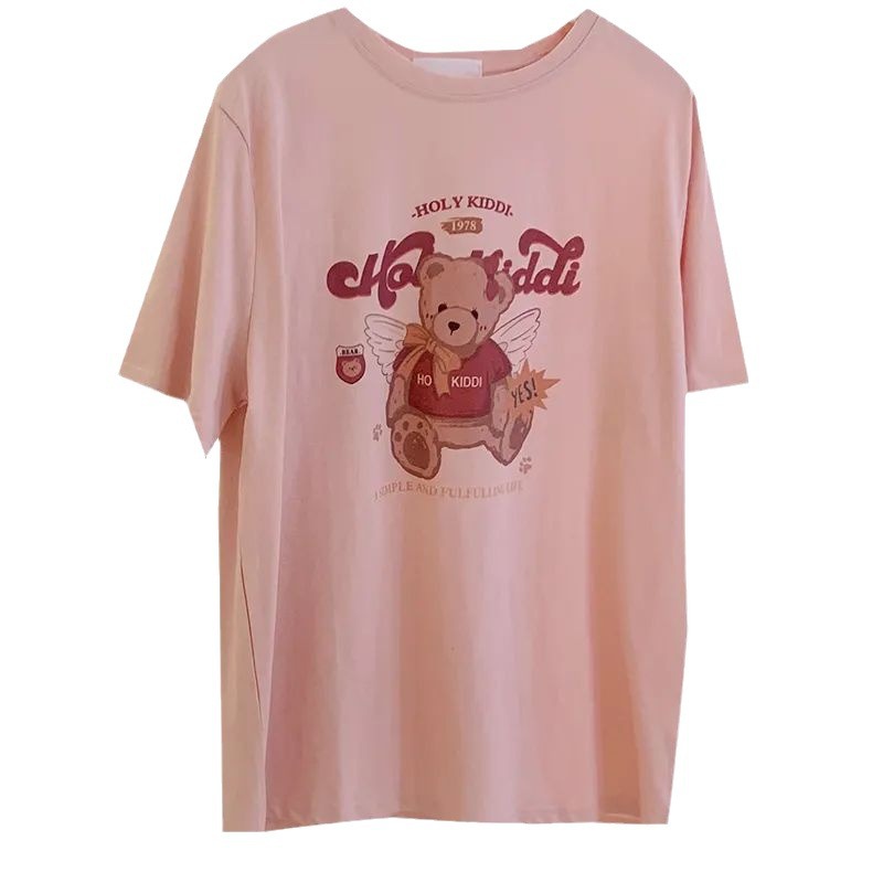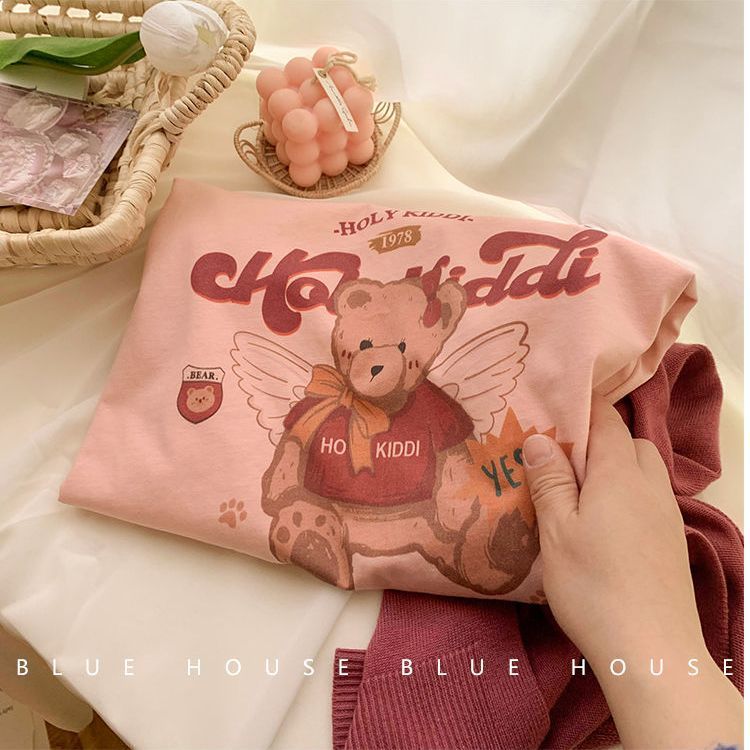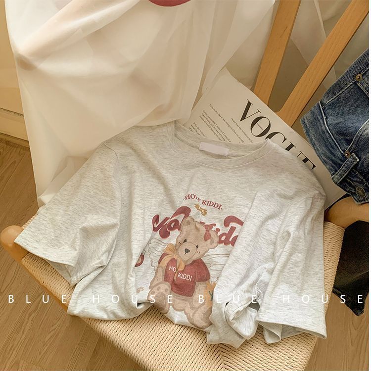 莫代尔小熊字母印花短袖T恤女夏季小众减龄宽松休闲百搭打底上衣