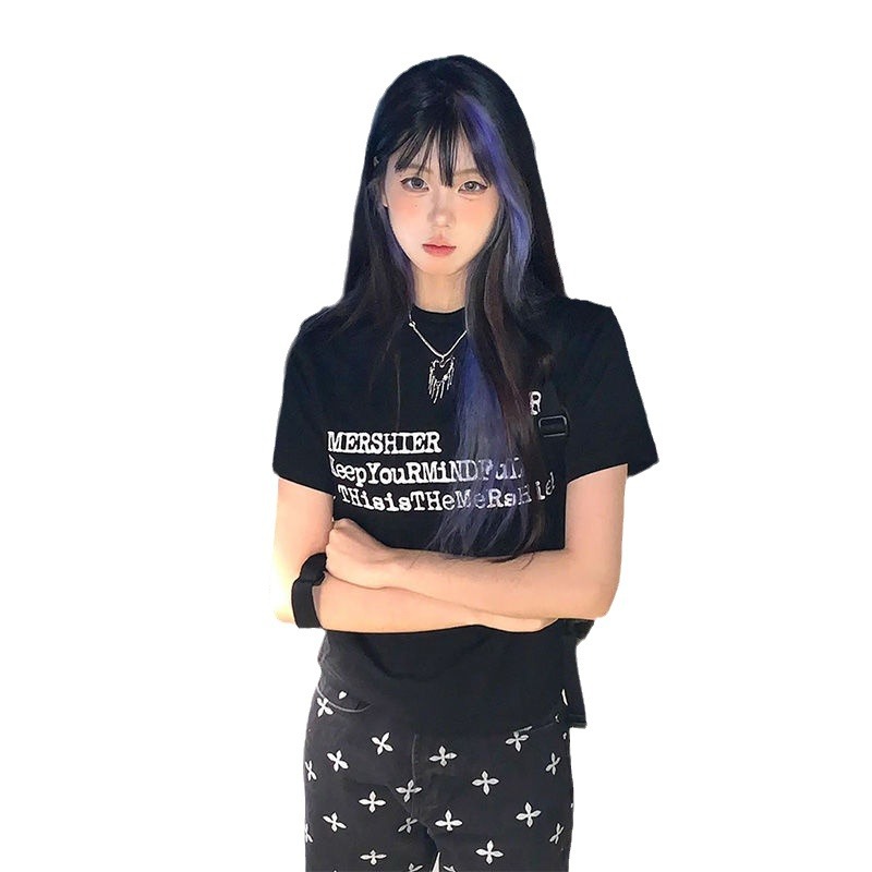 纯棉设计感小众短袖t恤女夏季大码宽松美式复古港风chic落肩上衣