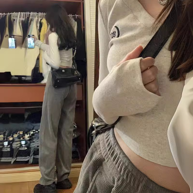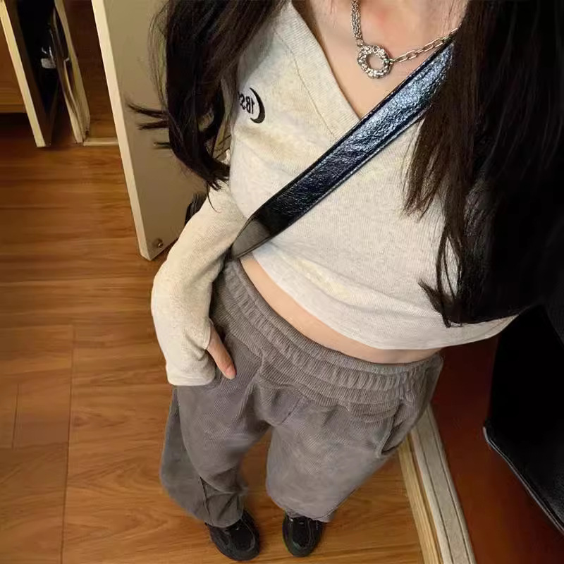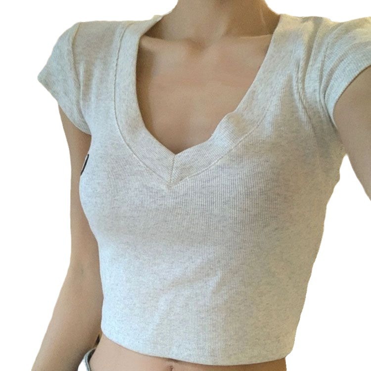 纯棉甜辣妹纯欲v领短袖女t恤夏季设计感小众紧身高腰露脐短款上衣