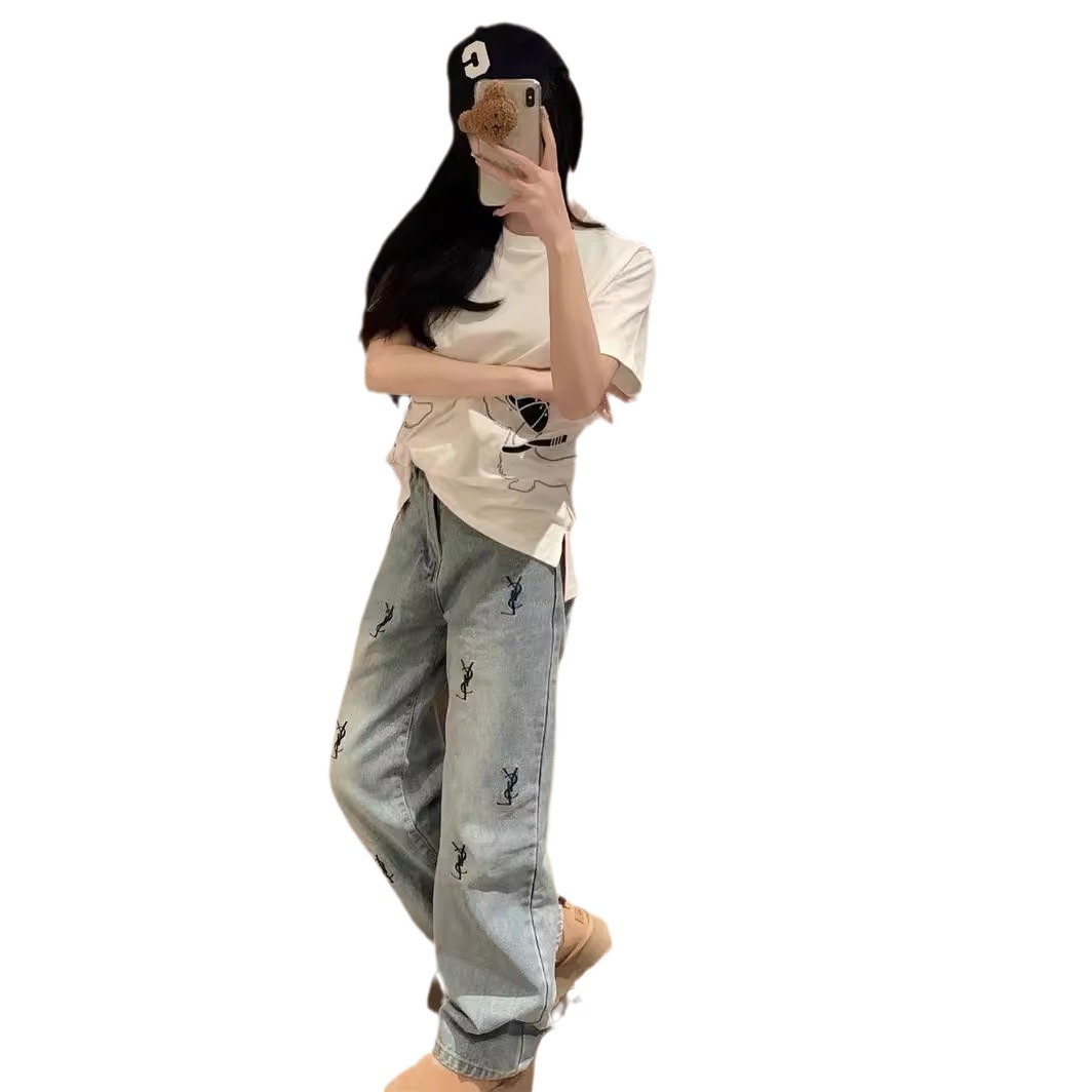 奥特莱斯~大牌余单小狗刺绣短袖T恤女宽松春夏季新款纯棉上衣