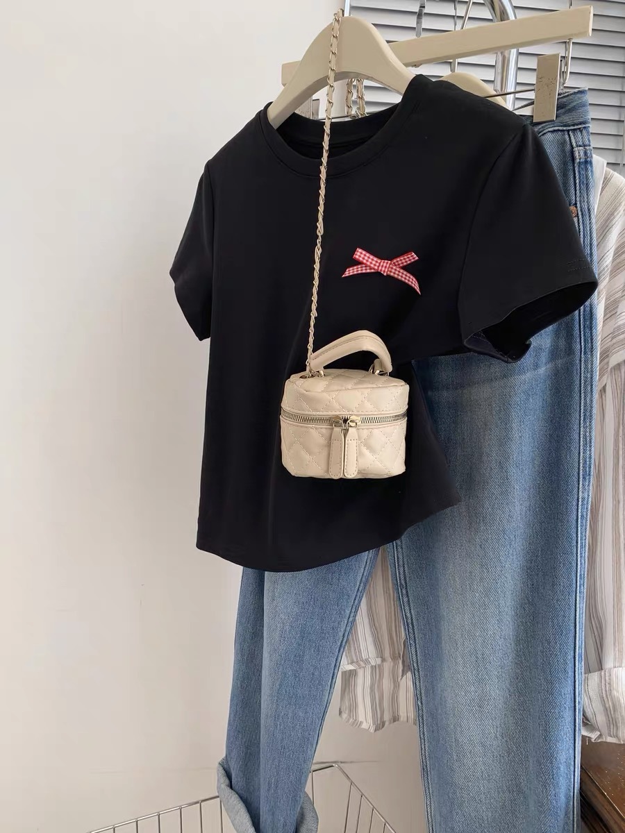 【质做高品】高级设计感纯棉T恤女夏短袖2025新款修身上衣打底衫