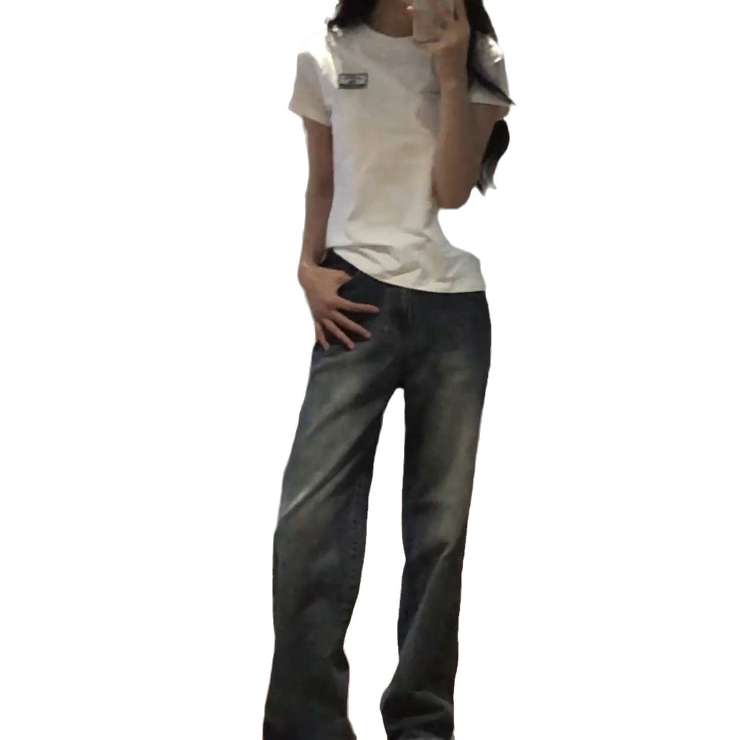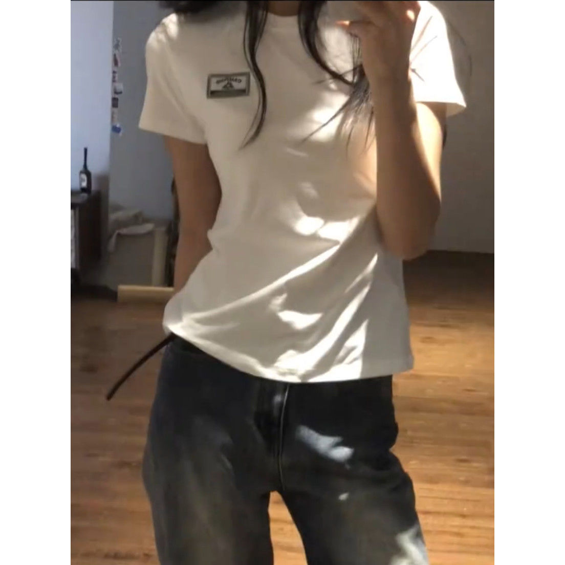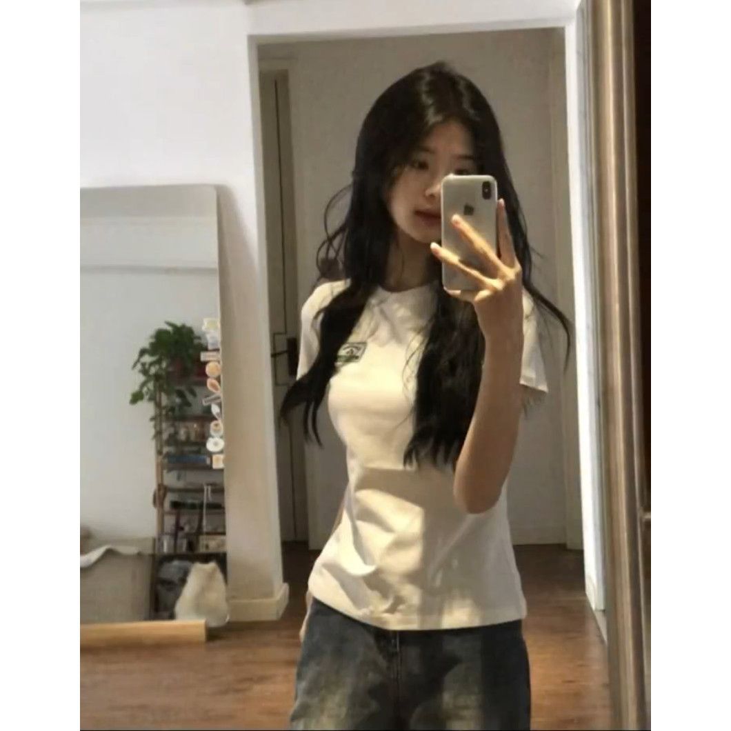 40支纯棉韩版胸前字母贴标正肩短袖t恤女夏季圆领修身显瘦上衣ins
