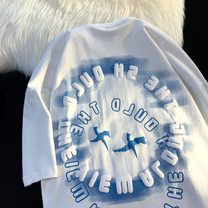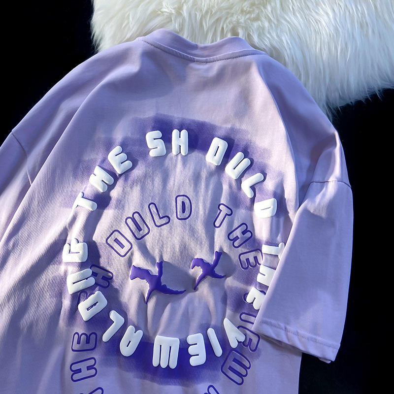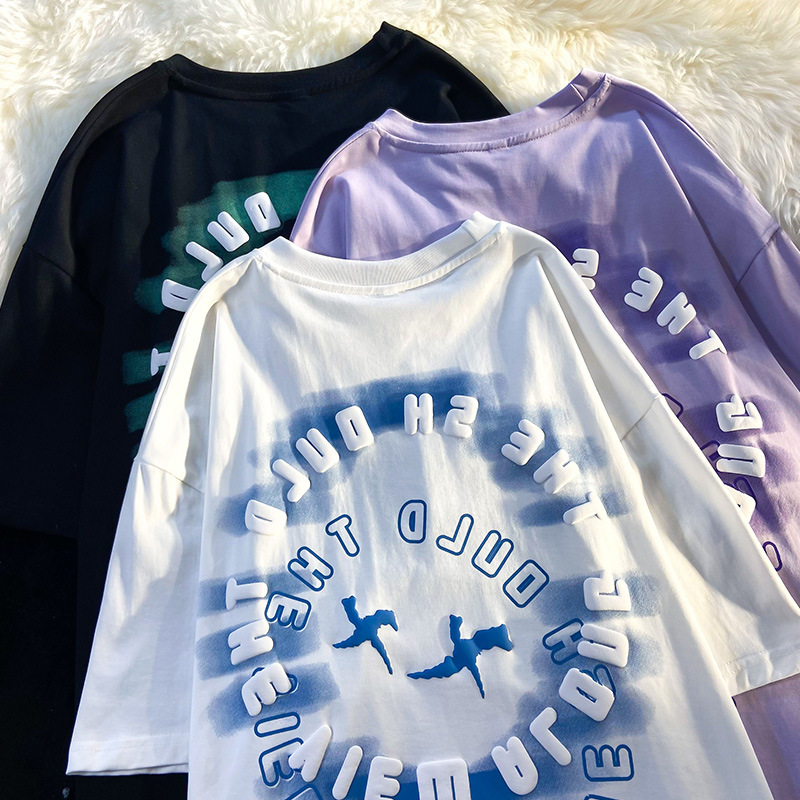 嘻哈潮美式发泡字母印花新款短袖显瘦t恤女时尚设计感情侣衫