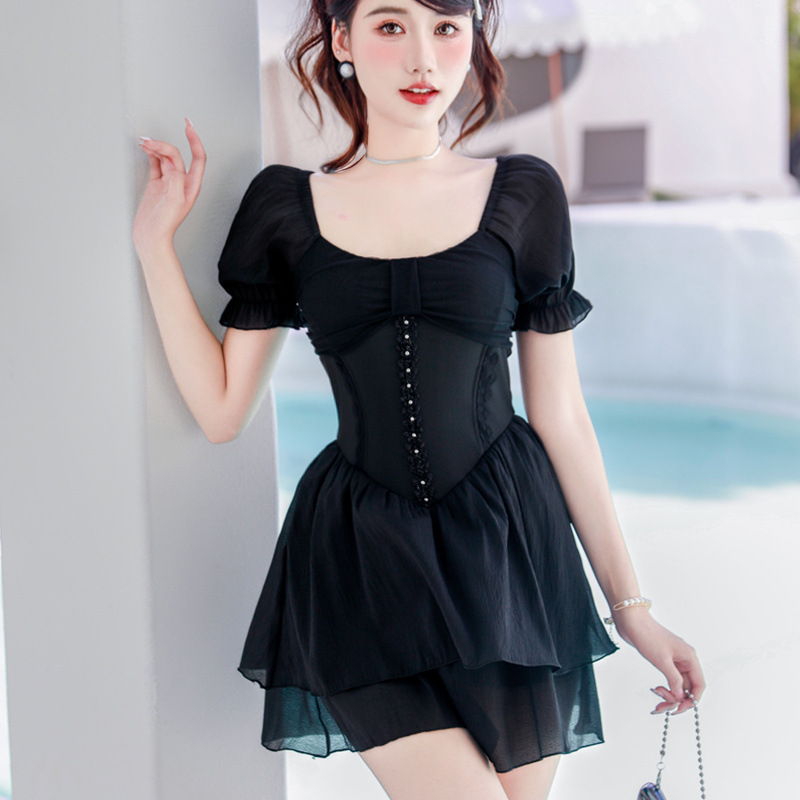 仙气游泳衣女连体平角保守显瘦遮肚性感温泉高级感学生蕾丝泳装