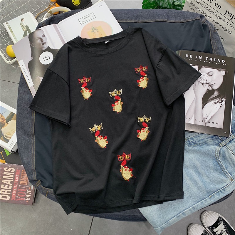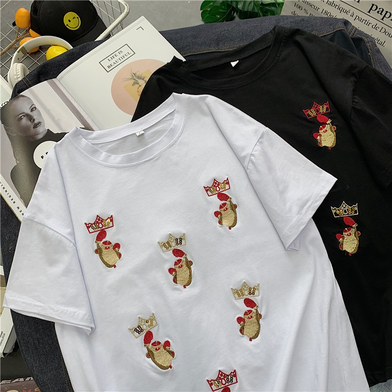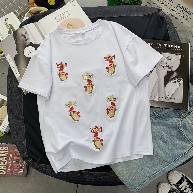 短袖t恤女时尚网红爆款宽松夏季新款刺绣圆领打底上衣设计感