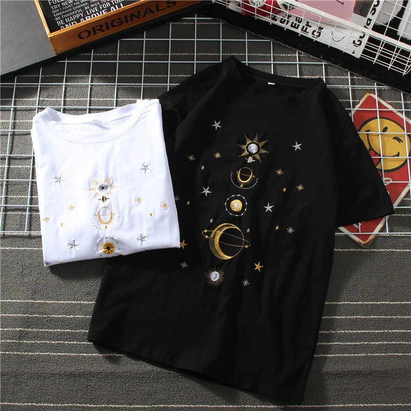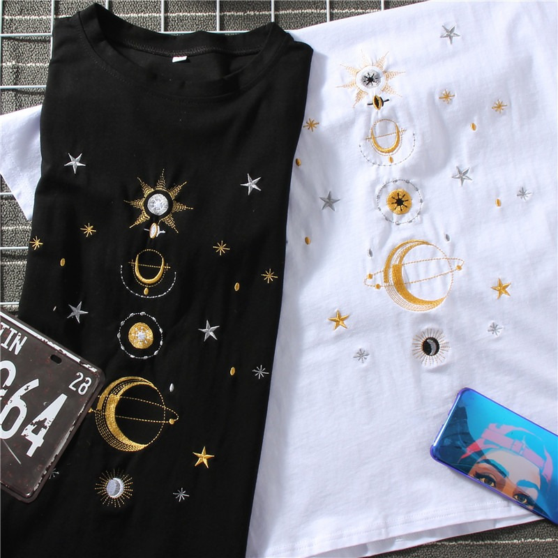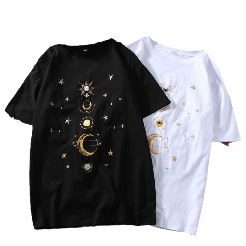 重工刺绣王炸星球系短袖t恤女春夏季新款韩版宽松小众显瘦上衣服