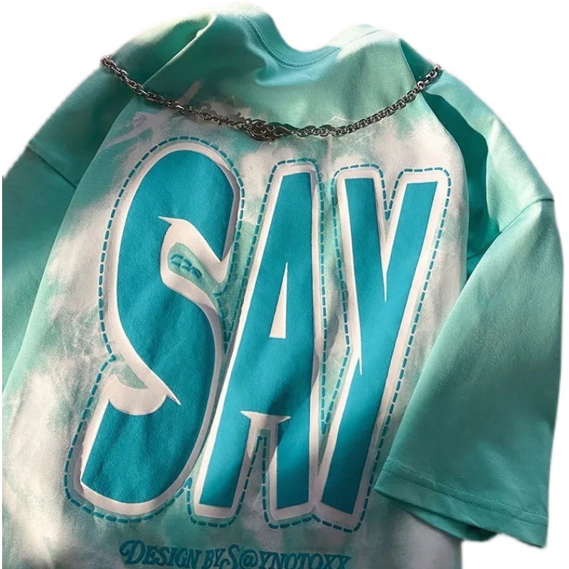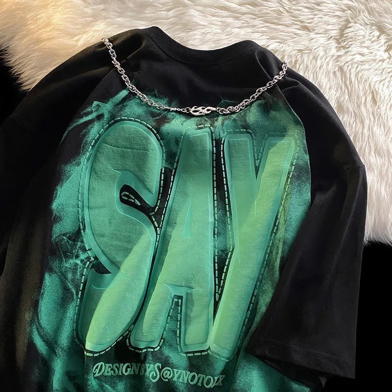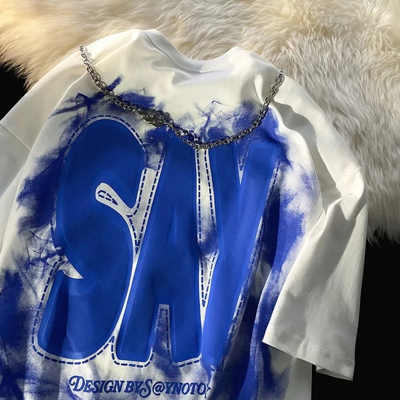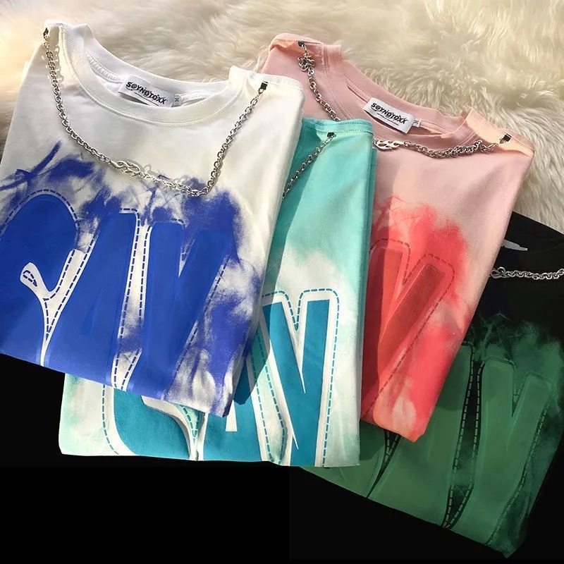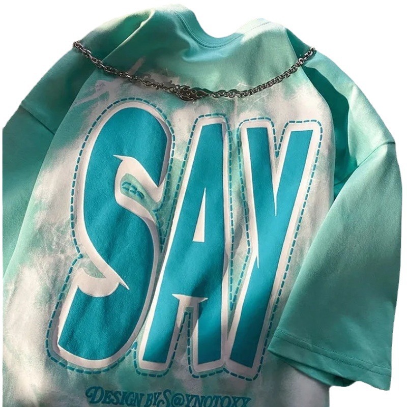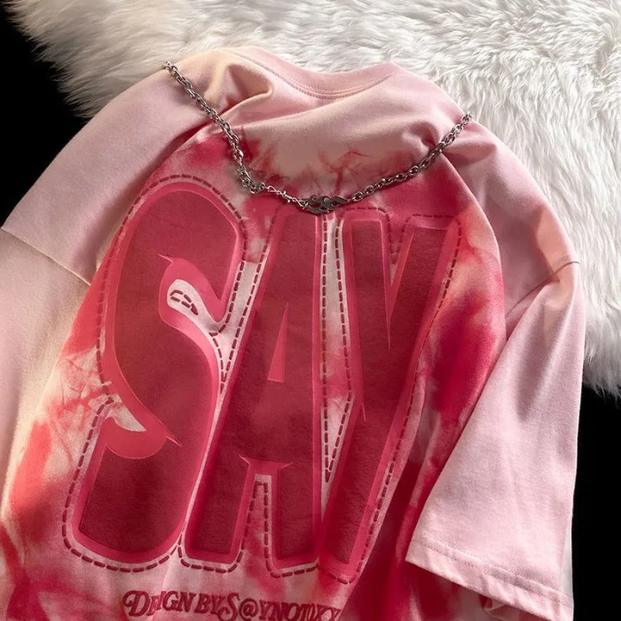 QIAOFUDUO潮牌创意ins字母印花项链短袖宽松慵懒风男女圆领t恤潮