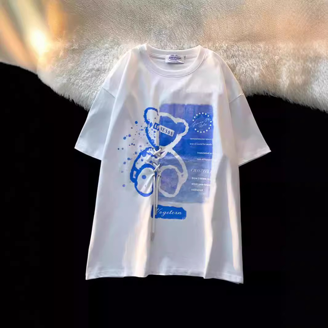 潮街新款可爱甜美设计感短袖t恤女春夏季小众宽松学生别致上衣潮