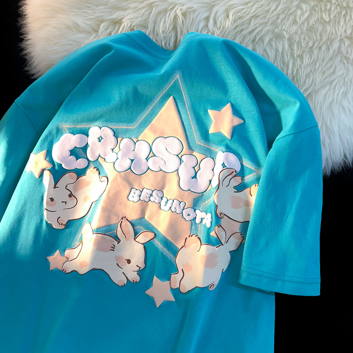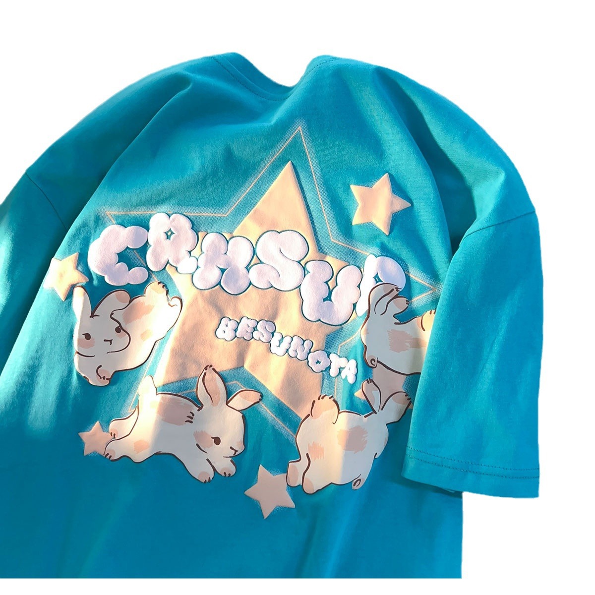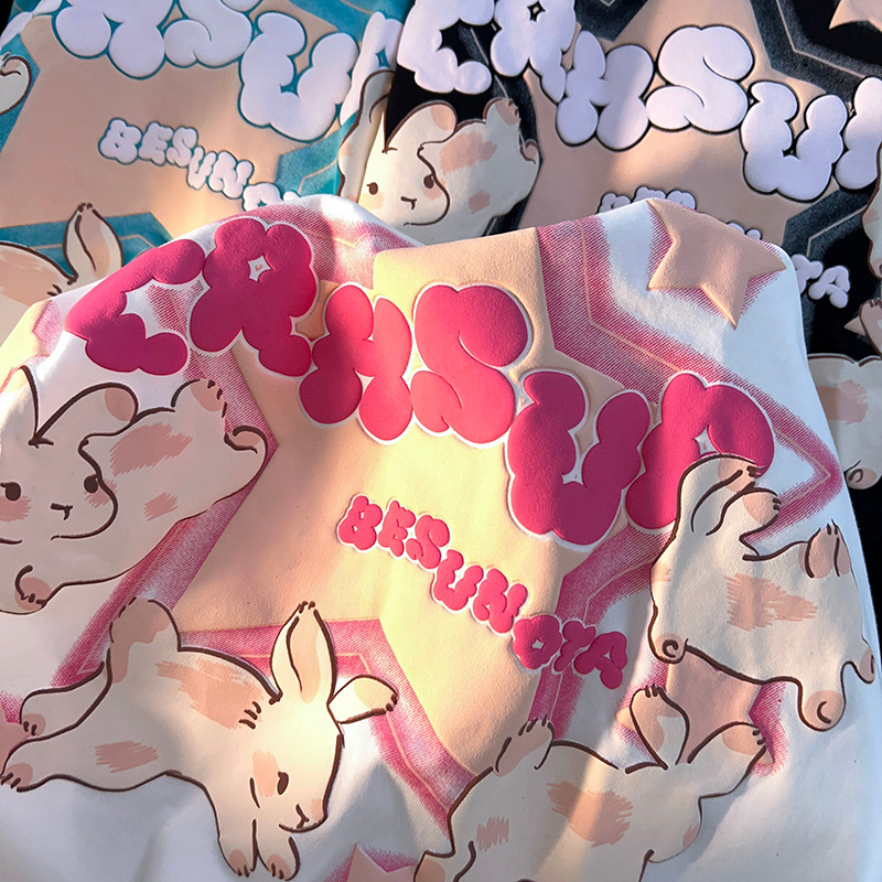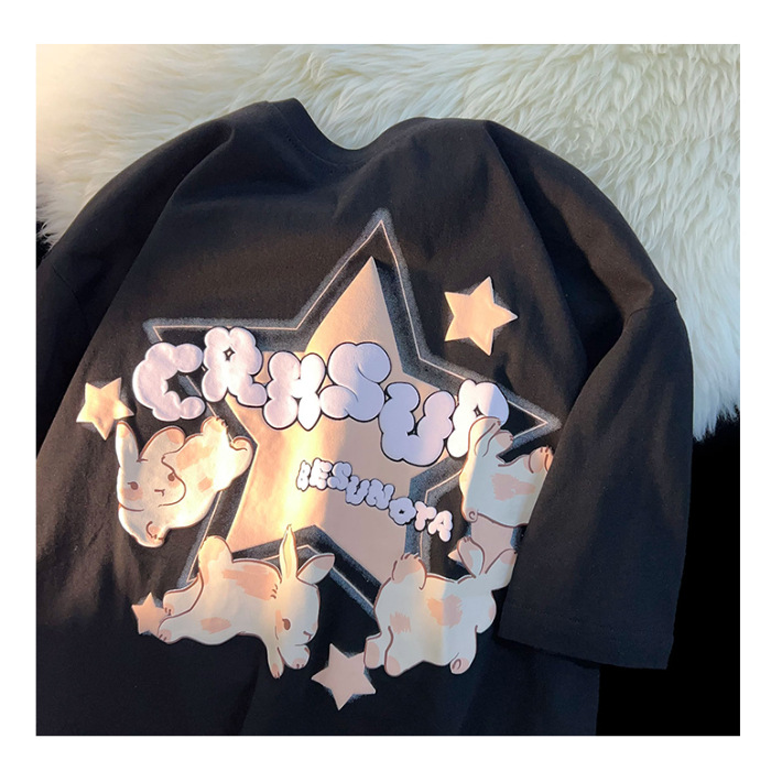 纯棉短袖t恤女发泡印花宽松百搭打底简约BF风oversize潮流情侣装