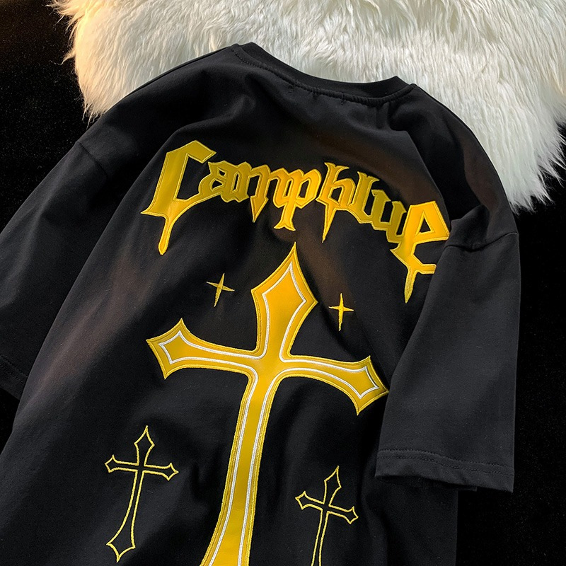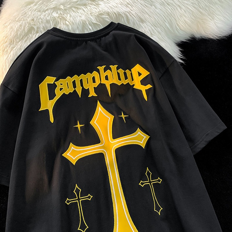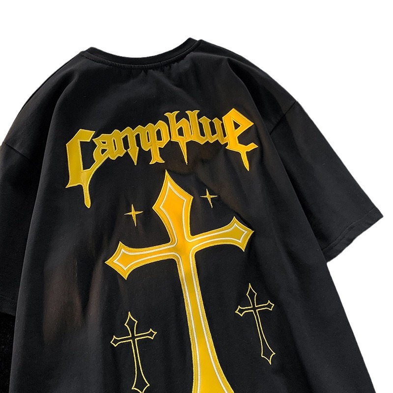 纯棉美式高街十字架印花短袖t恤女学生潮牌百搭宽松显瘦打底衫