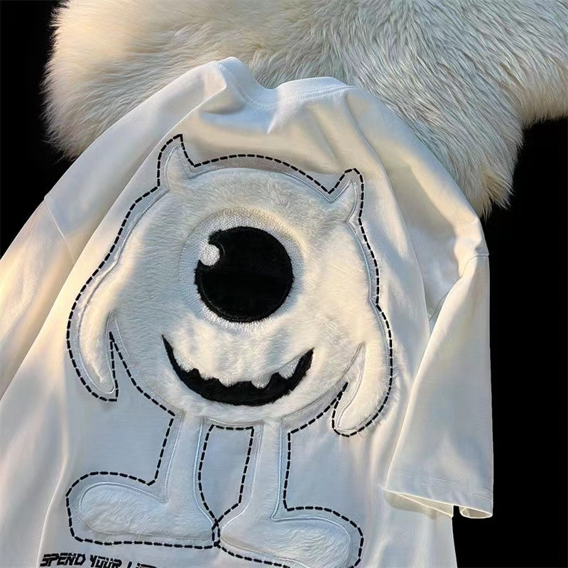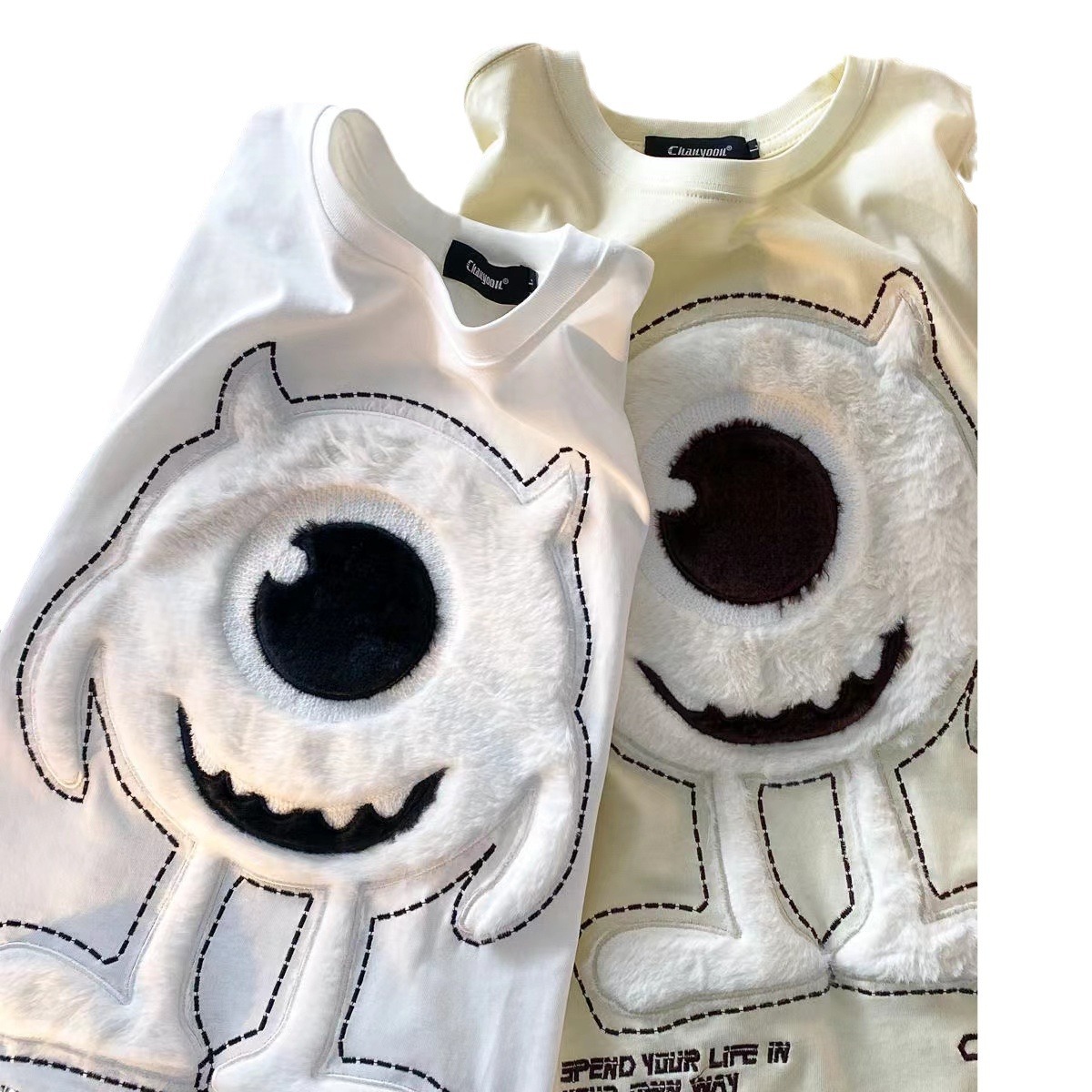 纯棉植绒短袖T恤女夏季新款ins潮牌百搭宽松情侣半袖学生上衣